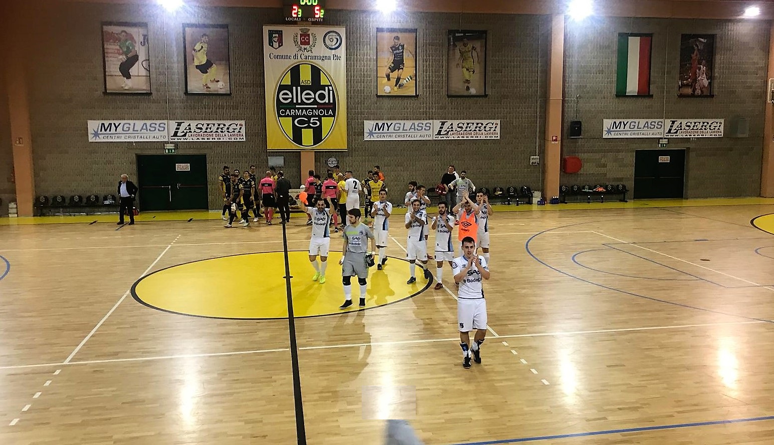 I blucelesti partono fortissimo e si portano in pochi minuti sul 3-1, con reti di Moragas, Villa e Urbano, fallendo un paio di occasioni per allungare. Nella ripresa il Carmagnola reagisce e tra il 5′ e il 7′ mettono sotto pressione la difesa ospite, bersagliando la porta di Montefalcone costretto a fare gli straordinari.