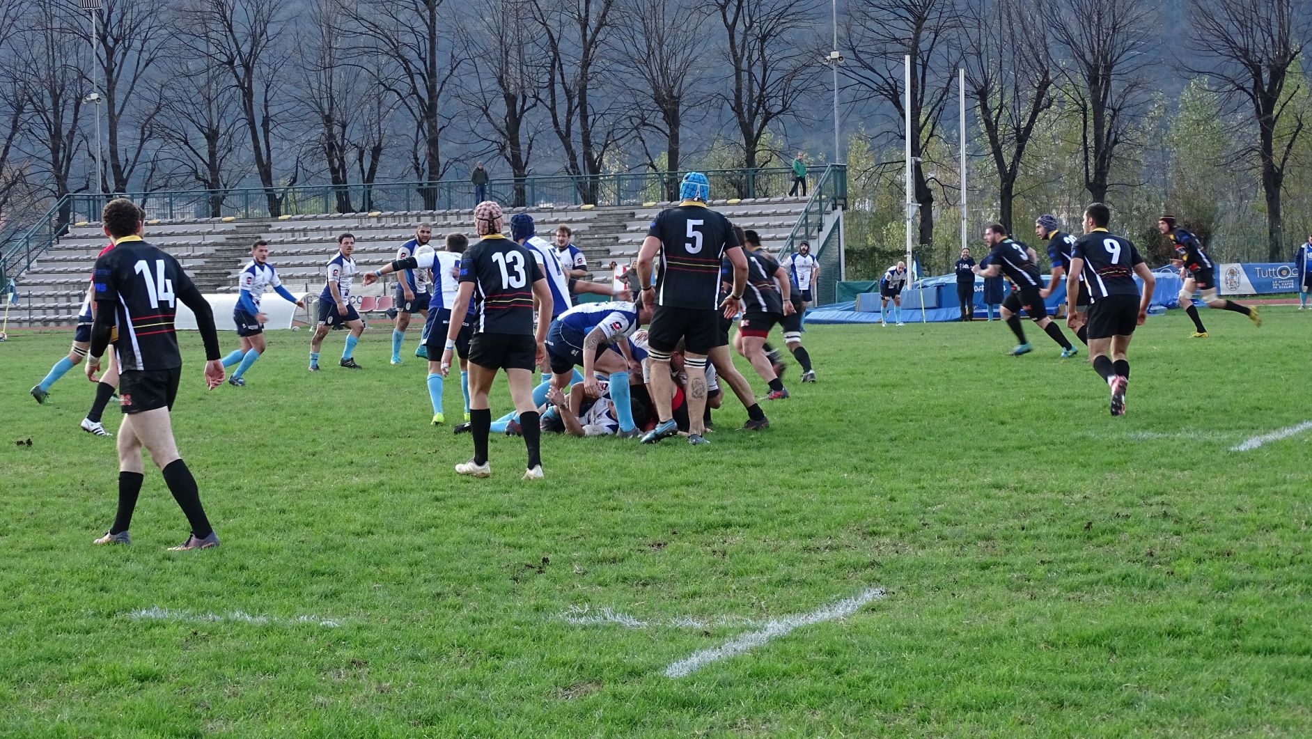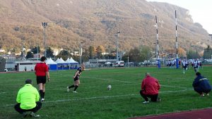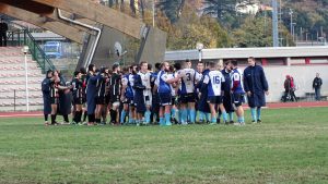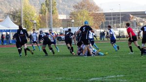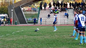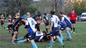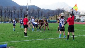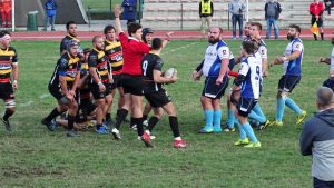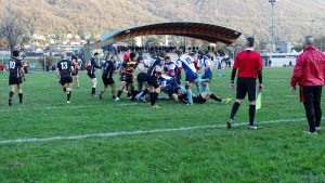 I blucelesti si trovano avanti 5-0 con la prima meta di giornata, poi vengono rimontati con meta e trasformazione degli orobici. Thomas Colombo e compagni reagiscono, trovando una nuova segnatura per il vantaggio 12-7. Bergamo pareggia e intorno alla mezz’ora passa a condurre 19-12, ma il Lecco nel finale di tempo riesce a riequilibrare il risultato con la terza meta della sua partita.