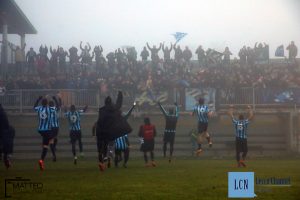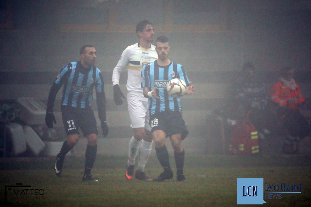 Dopo i primi 45′ di difficoltà, il Lecco ha compiuto una fiammata che, nei primi minuti della ripresa, si è concretizzata nel doppio vantaggio. Nella pesante nebbia milanese, poi, non è successo quasi più nulla sino alla rete di Vavassori, che ha rianimato solo nella teoria il finale di gara. Una volta al caldo i blucelesti hanno ricevuto la notizia arrivata dal campo ligure, che ha fatto esplodere di gioia soprattutto i centinaia di tifosi lecchesi accorsi anche a Inveruno.