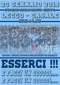 Esattamente come avvenuto nei giorni che hanno preceduto Lecco-Sanremese, poi vinta per due reti a zero dalla squadra bluceleste, anche in occasione della partita contro la vicecapolista i tifosi stanno chiamando a raccolta tutte le forze. Già nei giorni antecedenti alla sfida giocatasi ieri in Piemonte, alcuni rappresentanti della Curva Nord hanno preso le misure per organizzare la coreografia che si prenderà la scena nei primi momenti del match.