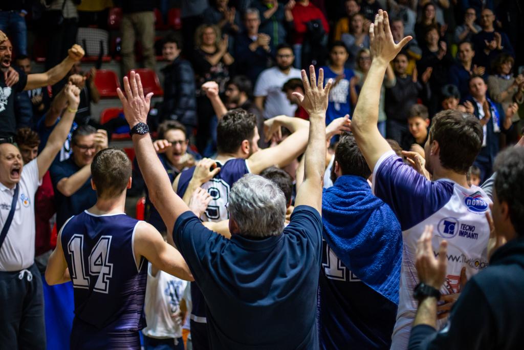Gli ospiti continuano a forzare e sprecare molti possessi, la svolta arriva soltanto a metà periodo con la tripla di De Bettin (20 finali per il play). La Npo si riavvicina (62-56 al minuto 30) e nel quarto periodo risponde colpo su colpo. L’aggancio al 37′, con Caversazio. De Bettin porta avanti i biancoblu, ma la giocata decisiva è la stoppata di Tagliabue su Norcino a 40″ dalla sirena. Lo stesso lungo olginatese segna il canestro del 71-74 che significa successo, grande festa e speranze sempre più concrete di salvezza.