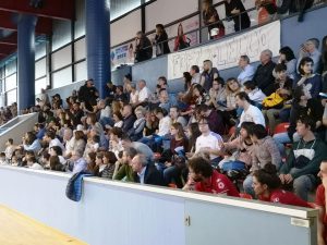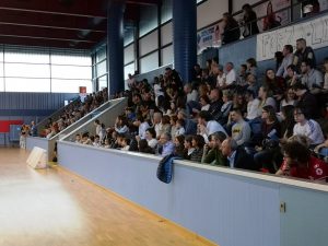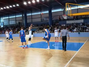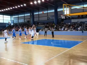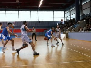 Di fronte a un Bione pieno, con moltissimi tifosi ospiti, quintetto iniziale per Bartocci con Teghini, Di Prampero, Cacace, Caceres e Rattalino. Teghini infila subito una tripla, Di Prampero si avventa su una palla vagante e va a schiacciare per il 5-2. L’inizio è ottimo per i padroni di casa. Cacace stoppa e Teghini prende un fallo prezioso per allungare dalla lunetta. Due tecnici a favore dei blucelesti per l’8-2 dopo 5′. Orzi si riavvicina ai liberi, ma Molteni da fuori riallarga il margine. Fine periodo 19-12.