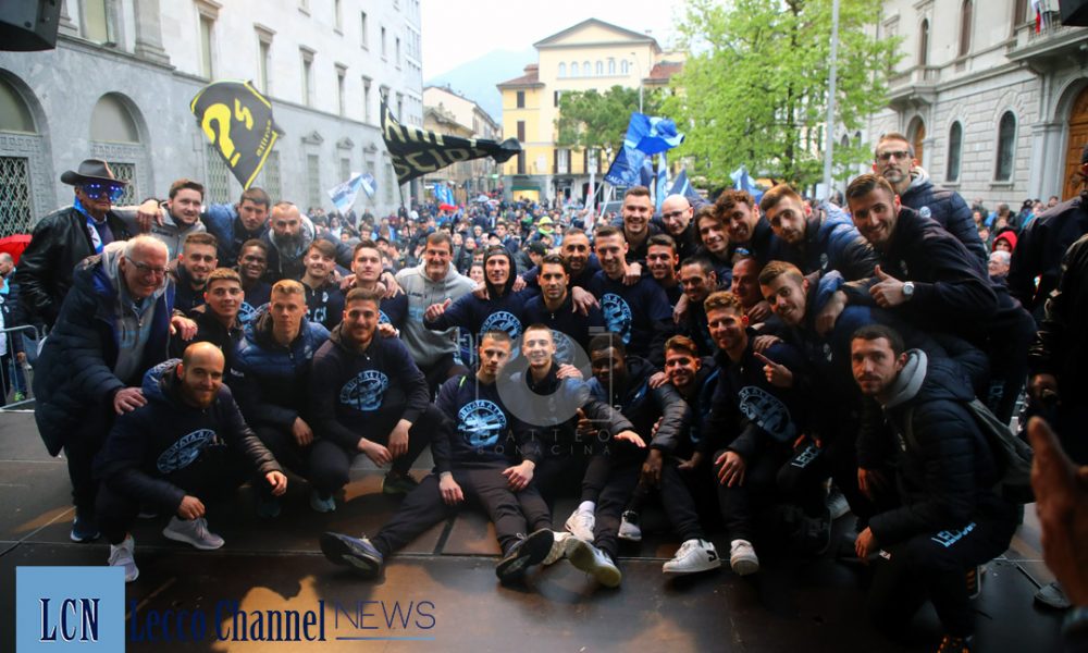 In centinaia hanno scortato l’arrivo in piazza della squadra bluceleste, giunta a piedi dallo stadio “Rigamonti-Ceppi”: tra cori e giubilo, c’è stato tempo anche per la contestazione a Corrado Valsecchi