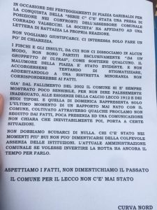 Il Comune per il Lecco non c’è mai stato.Curva Nord