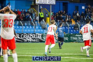 Primo brivido al 6′ con il rinvio di Bastrini che colpisce la schiena di Toure e finisce fuori di poco. Ci prova Olivieri, conclusione larga, poi la grande chance al 15′: Olivieri scende a sinistra e serve al centro per l’accorrente Han che calcia e trova la risposta di Safarikas. Poco altro nel primo tempo: al 28′ tiro centrale di Muratore, alto. La grande occasione per i padroni di casa è al 34′: Chinellato si ritrova il pallone a due metri dalla porta ma calcia male col mancino e non inquadra la porta di Loria.