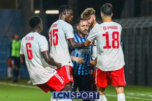 Al 94′, da un lancio a sinistra, Negro (ancora lontano dalla condizione ideale) inventa una giocata da fermo con dribbling a rientrare e conclusione sbilenca che finisce però per servire l’accorrente Capogna sul secondo palo. Il centravanti romano piazza la zampata da punta vera e sigla il meritato pareggio bluceleste sotto la Nord. Il Lecco dà il primo vero segnale di ripresa: in vista del derby di Como è incoraggiante, anche se mancherà quello che al momento è nettamente il miglior giocatore.