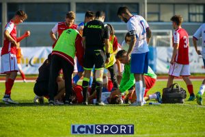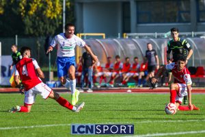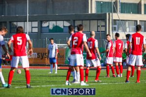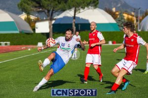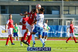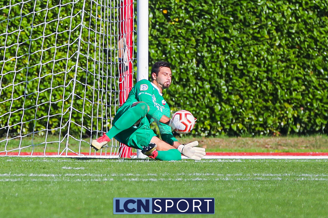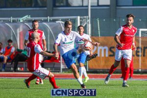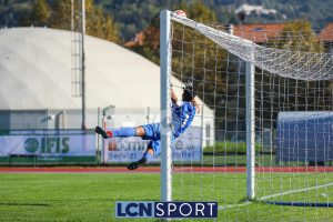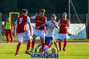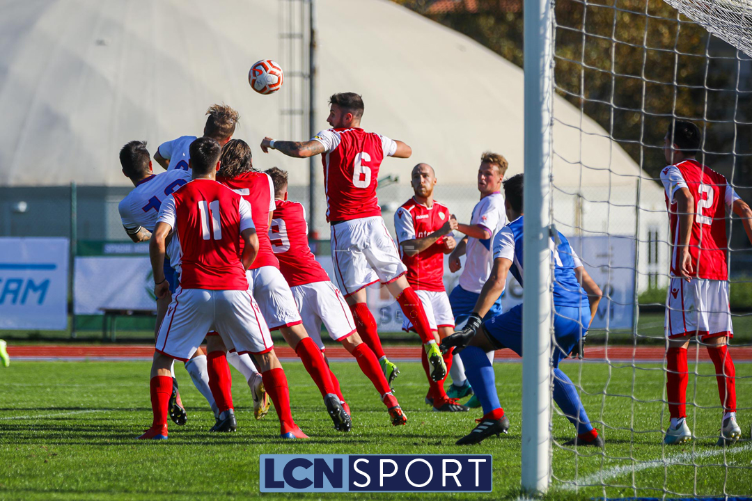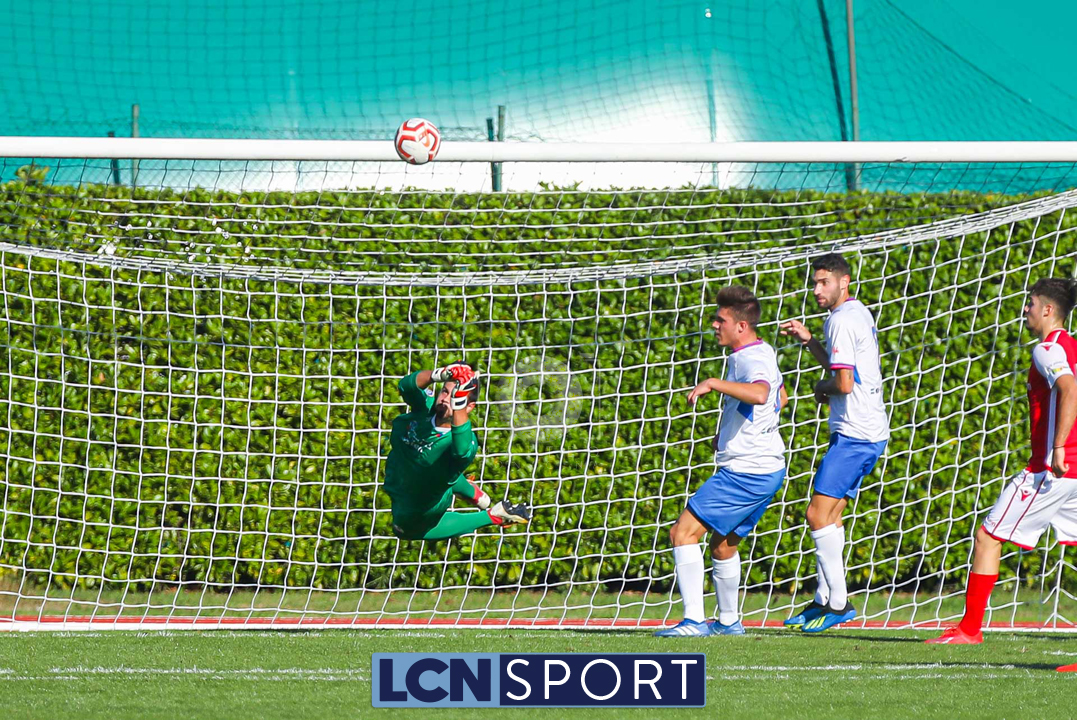 Brivido al 20′ minuto quando Vinci, su un lancio lungo, controlla il pallone con le mani ai limiti della propria area: bravo l’estremo difensore nella circostanza ad arretrare e sventare la pressione dell’avanti ospite. Al minuto 26 la più bella occasione della prima frazione, con il colpo di reni di Weiss che nega il gol a Citterio, svettato di testa meglio di tutti in occasione di una punizione.