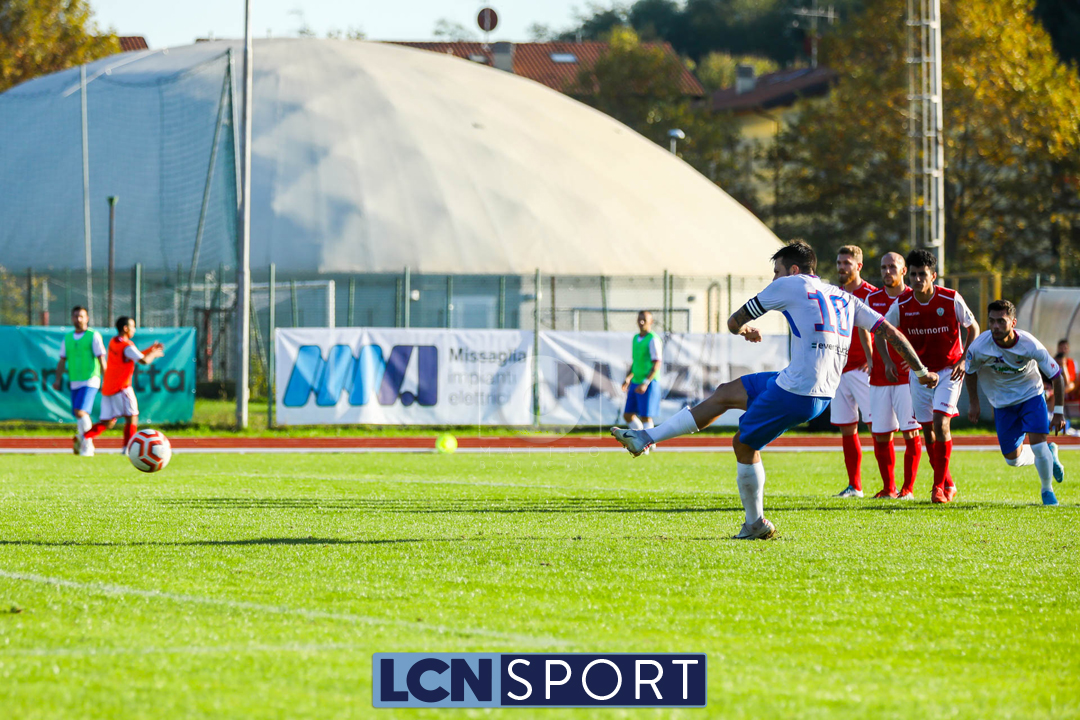 Continuano a spingere Isella, Iori e compagni, ma i trentini, nettamente più spenti rispetto a un sufficiente primo tempo, fanno muro. Alla mezz’ora il NibionnOggiono trova la chiave per sbloccare la gara: slalom di Isella in area di rigore, fallo netto di un difensore ospite e sacrosanto penalty. Il “diez” dei lecchesi è freddo dal dischetto e trasforma.
