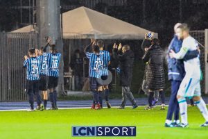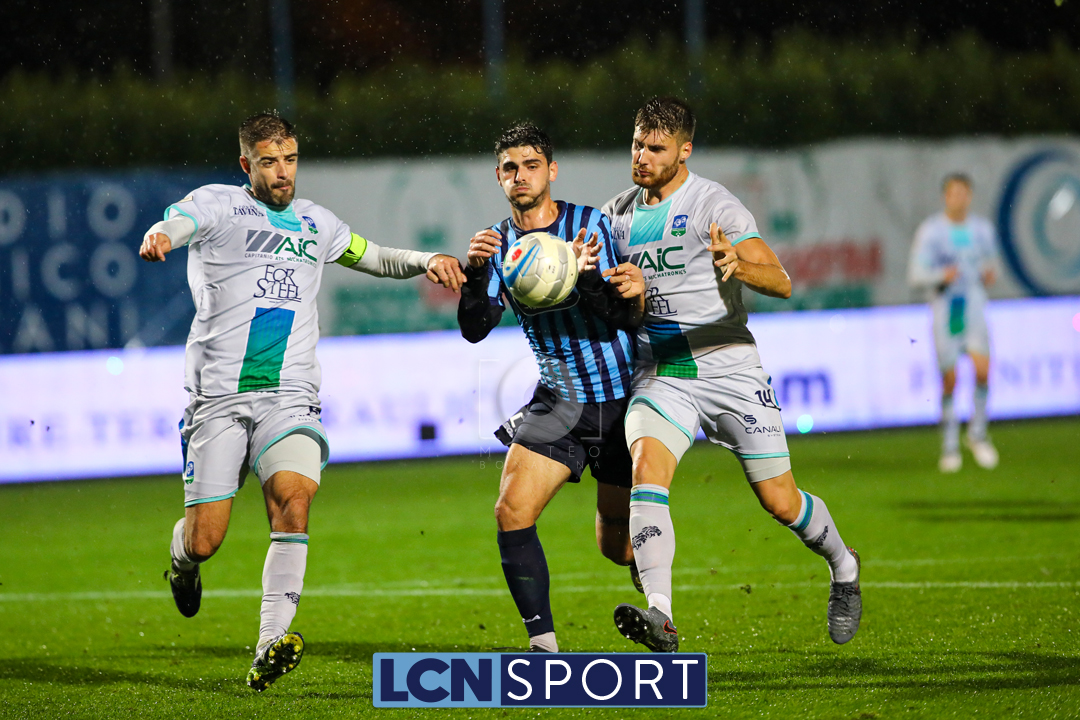 Calcio Lecco 1912 (3-4-1-2): Safarikas, Vignati, Marchesi (22′ st Bobb), D’Anna (12′ st Carissoni), Malgrati, Samake, Procopio, Nivokazi (12′ st Giudici), Nacci, Fall (1′ st Chinellato), Negro (35′ st Strambelli). A disp. Pulze, Magonara, Malvestiti, Merli Sala, Capogna, Moleri, Bonsi. All. D’Agostino