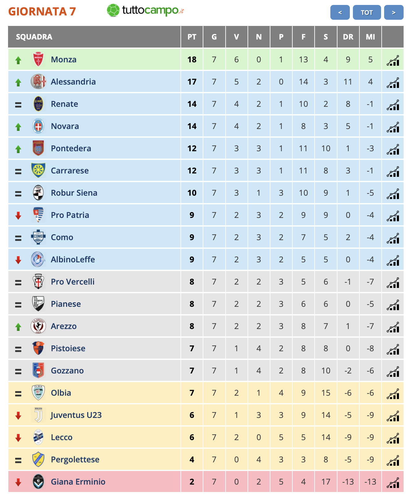 Da terzultimo a terzultimo. E’ il posizionamento della Calcio Lecco 1912 nella classifica del girone “A” di Serie C dopo l’avvicendamento tra Marco Gaburro e Gaetano D’Agostino. La guida tecnica in casa bluceleste è variata dopo la sconfitta interna patita con l’Alessandria (0-2): in quel momento i blucelesti avevano accumulato due vittorie e cinque sconfitte e si trovavano a -1 dalla zona salvezza; nelle successive sette gare sono arrivate quattro sconfitte, due pareggi e una vittoria sul campo di Carrara. Queste le due graduatorie a confronto: Gaburro ha totalizzato sei punti in sette partite, mentre il successore D’Agostino cinque nel medesimo periodo, medie simili ma frutto di percorsi diversi.