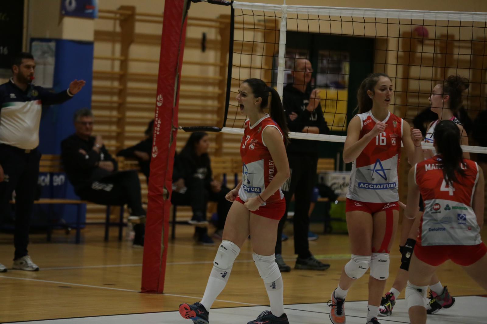 Brilla ancora, in attacco, Francesca Dalla Rosa (17 punti, + 7 V-P, 2 muri), positiva anche in ricezione (30% perfetta, 48% positiva). Recuperata a poche ore dalla partita ed efficace Martina Martinelli (16 punti, 3 aces); in doppia cifra anche Arianna Lancini (12 punti), capitan Martina Focaccia (12 punti) e Camilla Gerosa (10 punti). Chiude la gara con un buon 38% in ricezione perfetta il libero Lucrezia Formenti. Tra le fila delle padrone di casa prestazione altamente efficace per Fornara, un’iradiddio con 26 punti messi a segno (+13 V-P), Fragonas (20 punti, +10 V-P), e Diego (19 punti).