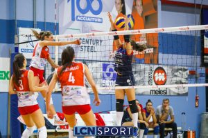 E’ la giovane Camilla Gerosa a ricevere, a fine gara, il premio floreale assegnato al MVPicco: la centrale mette a segno 9 punti totali, seconda miglior marcatrice della squadra alle spalle di Francesca Dalla Rosa (14 punti, +8 V-P). Vicina alla doppia cifra anche capitan Martina Focaccia (8 punti), più in ombra Lancini e Martinelli (4 punti a testa). Coach Milano ha effettuato anche del turnover, mandando in campo Bianchi, Mandaglio e Mainetti, le prime due anche a segno; in crescendo la ricezione tra le biancorosse (Formenti 22% perfetta, 61% positiva, Dalla Rosa 38% e 62%, 22% e 61% di squadra). Buone prestazioni, tra le ospiti, per Mirabelli (8 punti), Rivetti (7 punti) e Giardi (8).