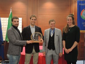 Infine il premio più atteso, il Trofeo Panathlon Lecco 2019, assegnato al canottiere mandellese Martino Goretti, campione del mondo di canottaggio singolo e vincitore di tantissimi titoli e medaglie nel corso della sua lunga carriera. «Il mio sogno – ha spiegato – è vincere un’Olimpiade e lo è sempre stato. Questo fa sì che io non riesca a mollare anche se l’età avanza e dovrei pensare di mettere i remi in barca come si suol dire».