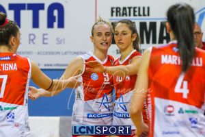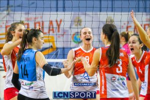 In casa ospite ottime prestazioni di Orlandi (17 punti, +8 V-P), Gallina (17 punti, +8 V-P, 3 muri, 36% efficienza), entrambe top scorer di serata e Badalamenti (14 punti, 43% ricezione perfetta). Tra sette giorni la capolista dovrà affrontare la complicata trasferta di Palau, molto insidiosa per le difficoltà logistiche che rappresenta.