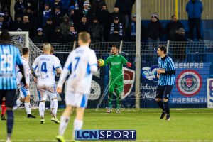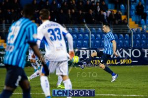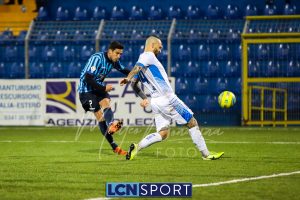 Un Lecco che gioca un gran primo tempo, costruendo tantissime occasioni. Prime due conclusioni, da sinistra, di Giudici, Marchegiani scalda i guantoni. Al 10′ Capogna spreca in allungo su cross di D’Anna, col sinistro largo di poco. Cinque minuti più tardi azione personale di D’Anna che sulla destra punta un avversario e poi conclude sfiorando il palo. La pressione bluceleste prosegue: minuto 22, D’Anna dal centro area si trova il pallone dopo il controllo e l’appoggio di Capogna e conclude, di punta, alto. Al 27′ l’errore, di reparto e poi di Safarikas che scende male sul tiro al volo di Cagnano, la tocca ma non può trattenerla, a costare lo svantaggio.