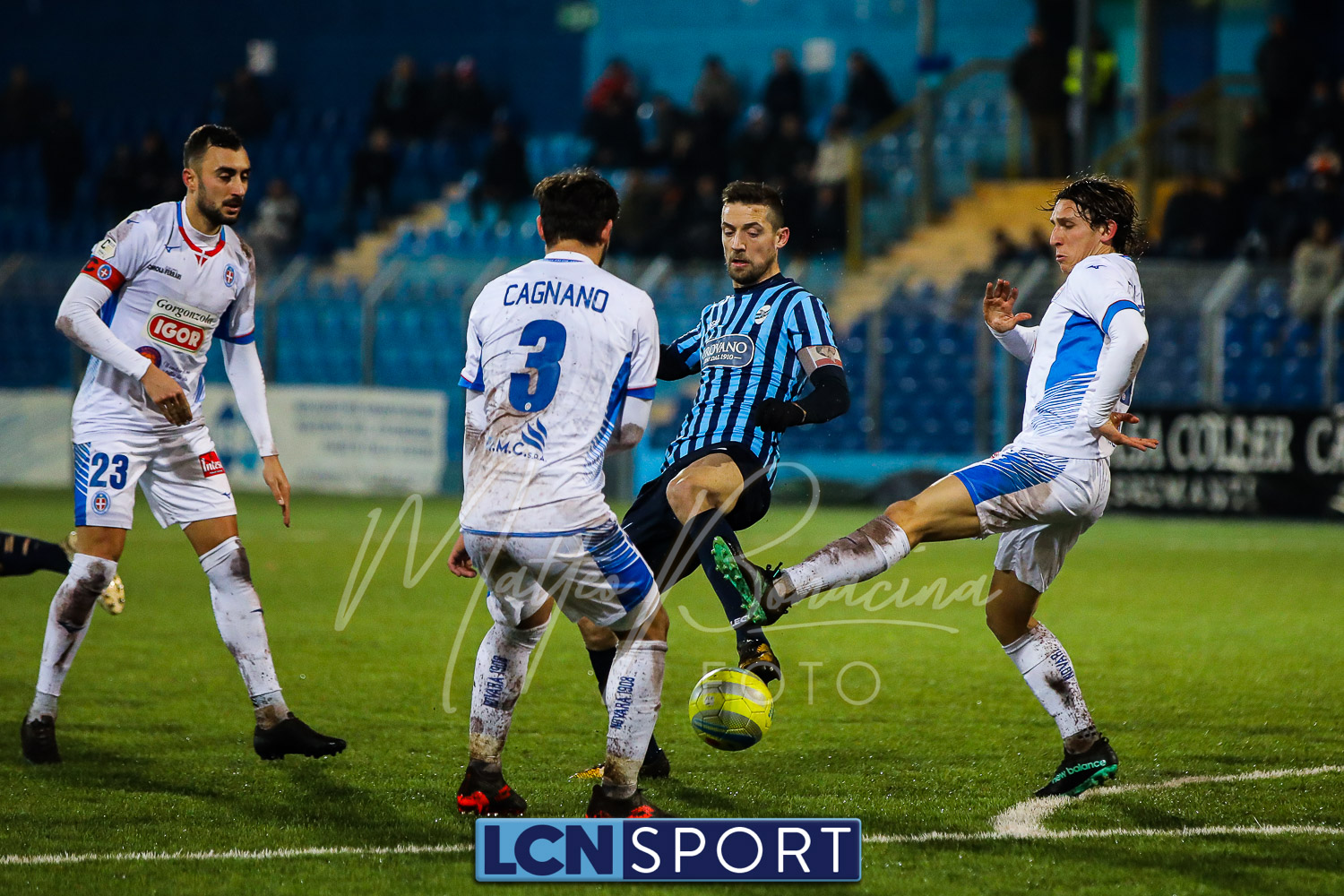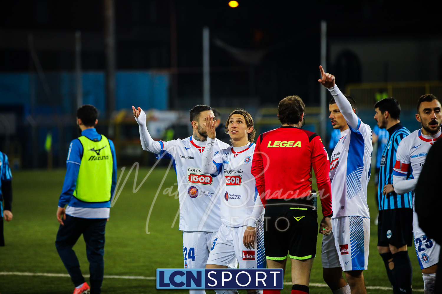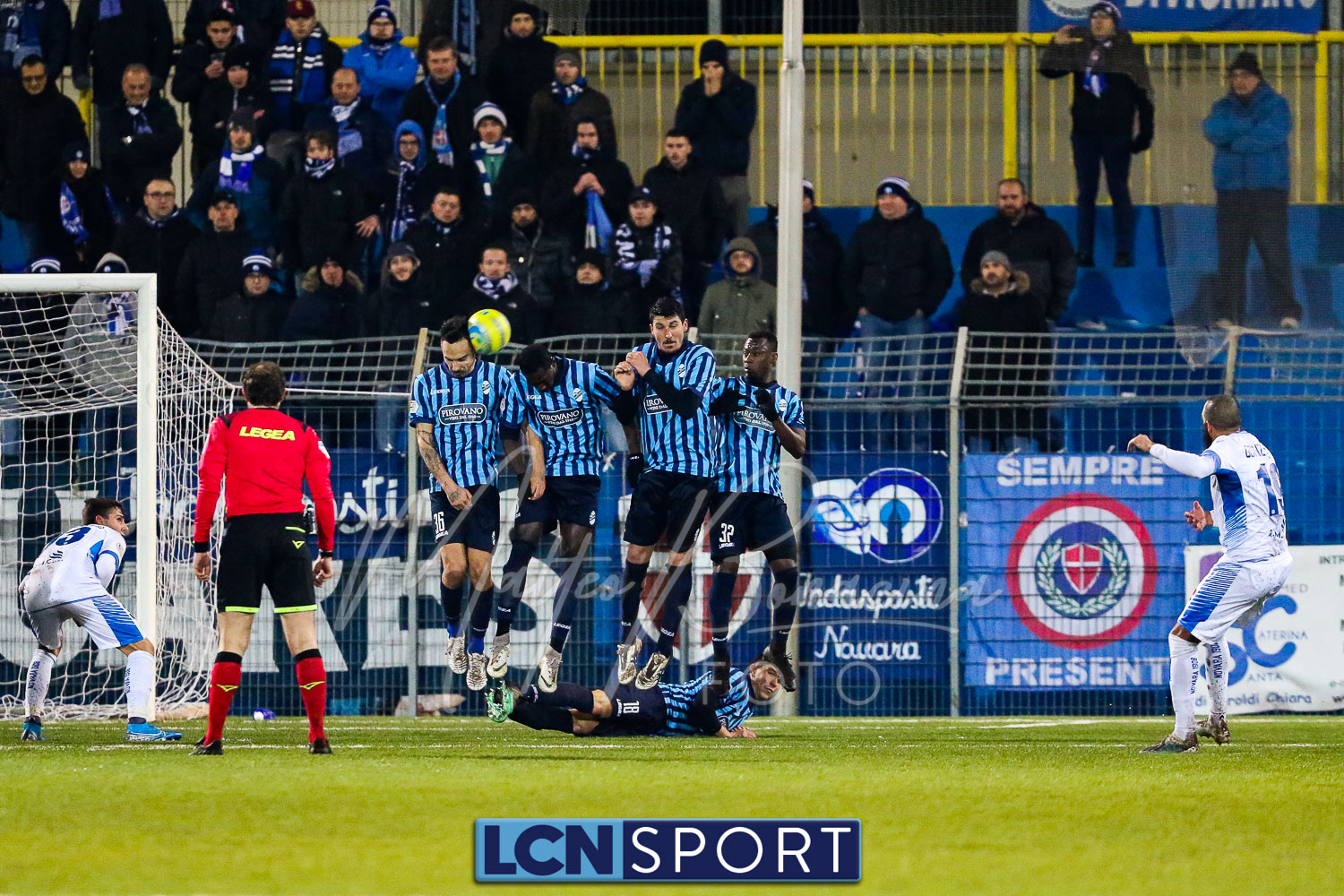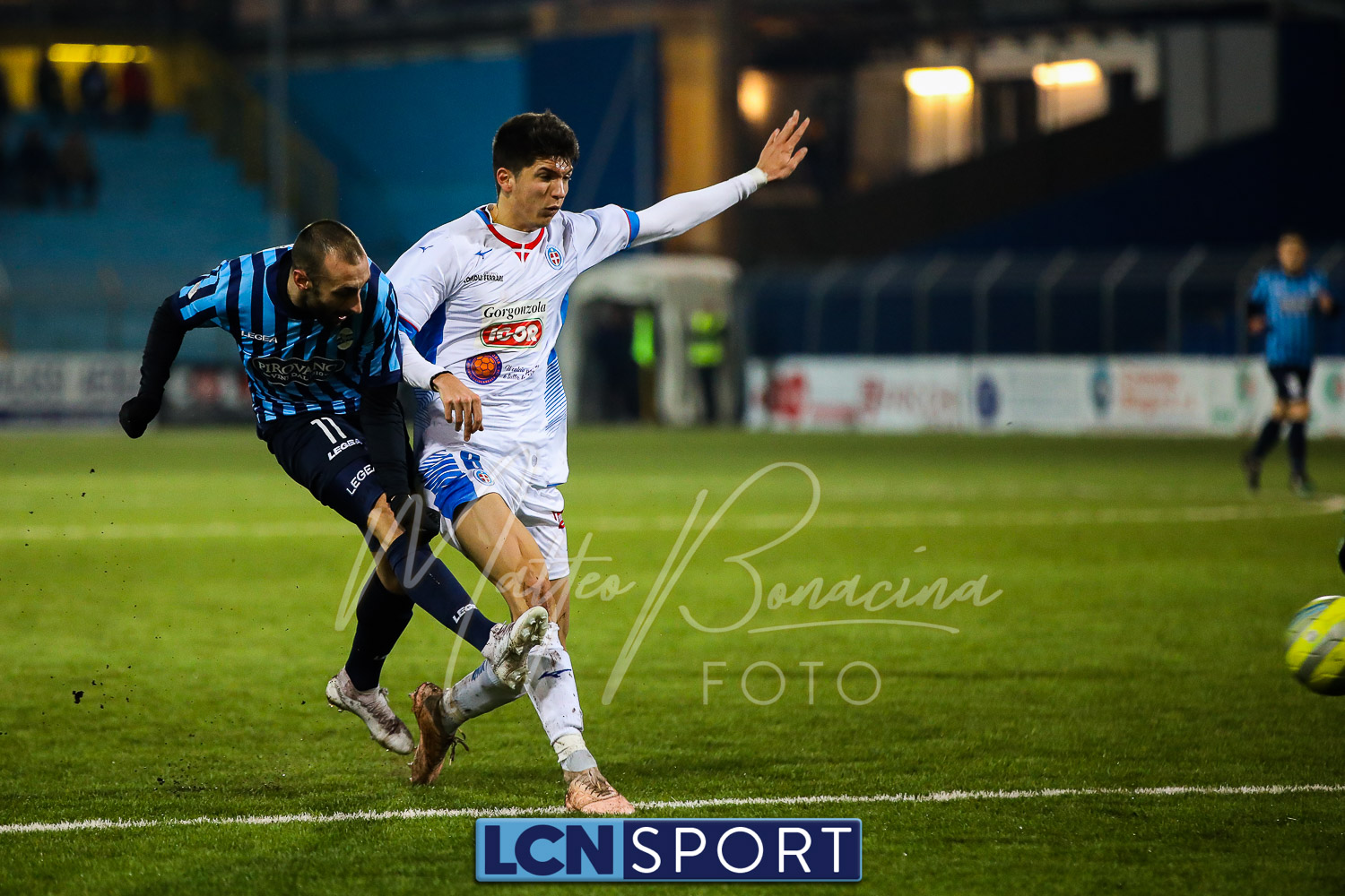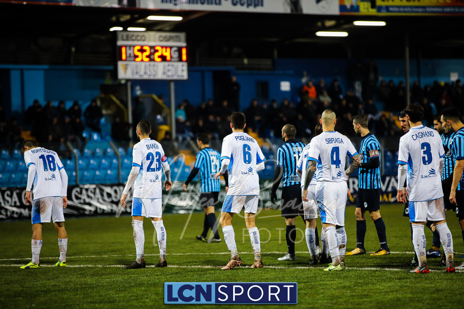 Le due formazioni rientrano in campo dopo quaranta minuti, in tempo per evitare la sconfitta a tavolino (il limite da regolamento è di 45′). Lo fa meglio il Novara, con la conclusione alta di Piscitella. Il Lecco si sveglia, prima con Giudici poi con D’Anna che al 64′ va fino in fondo e conclude direttamente sul portiere. Ma i blucelesti ci sono: Giudici e Strambelli combinano bene a sinistra, palla per D’Anna che crossa e Capogna, di testa, anticipa l’uscita di Marchegiani completando la rimonta. Passano tre minuti ed è 3-1: D’Anna si ritrova il pallone al limite destro dell’area, sterza, allunga e conclude con un missile sotto la traversa.