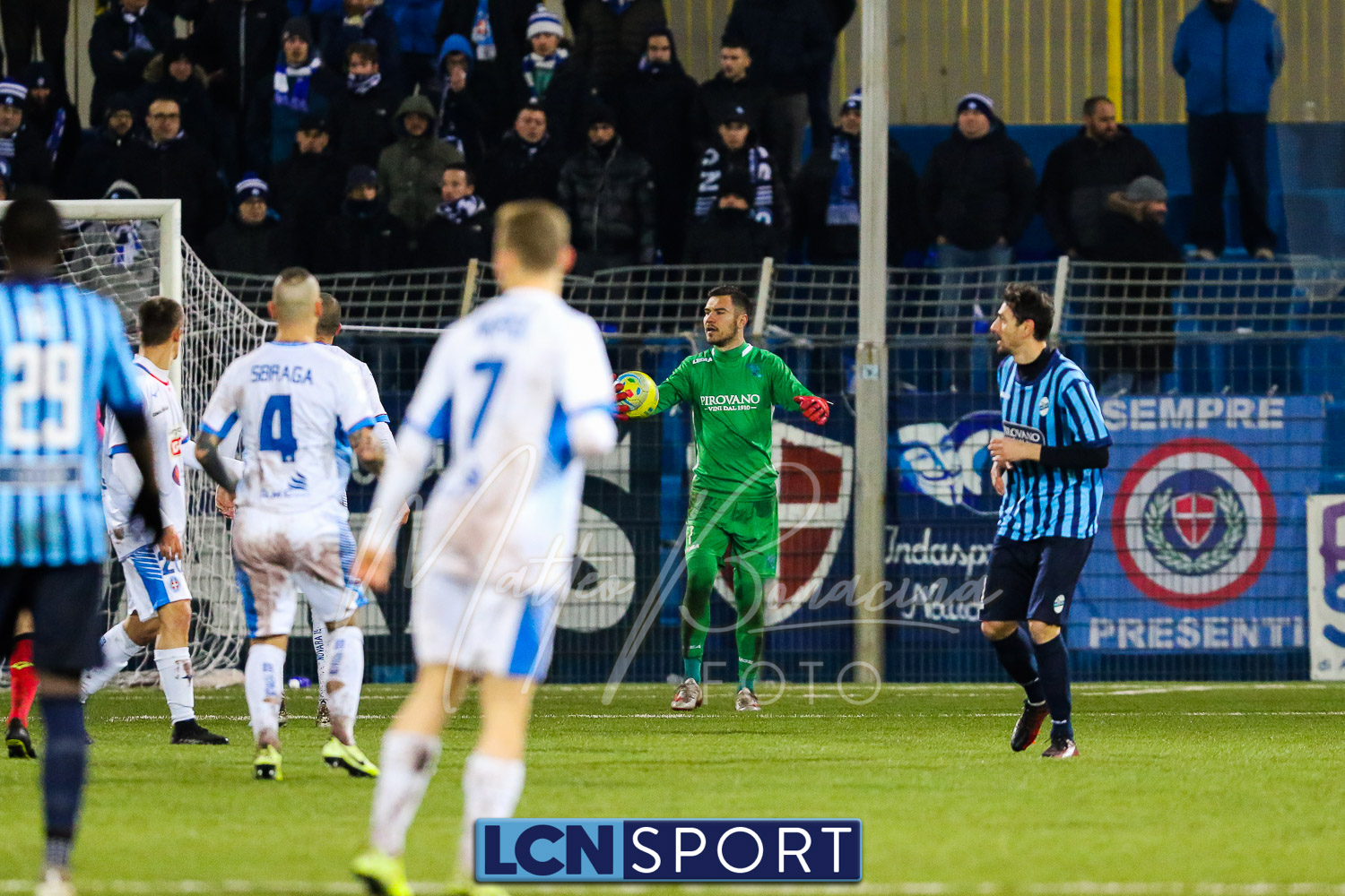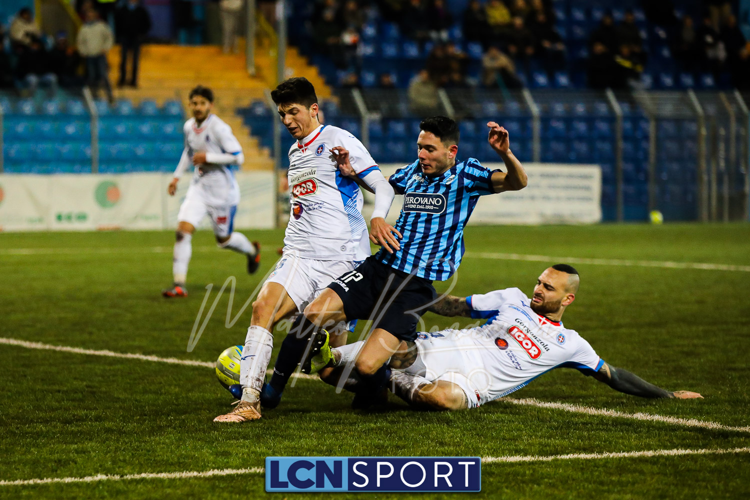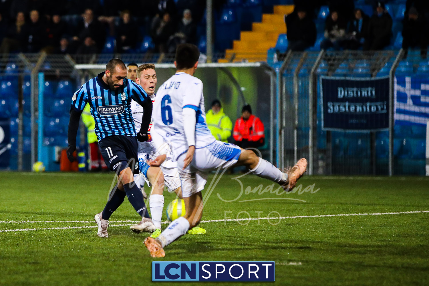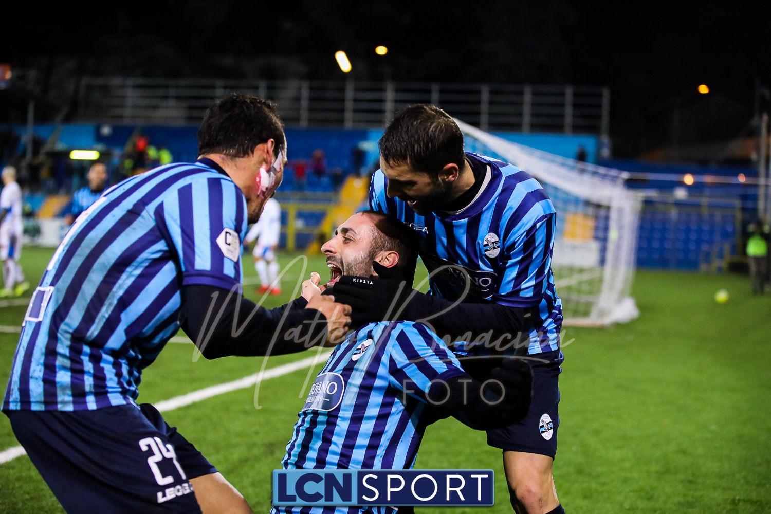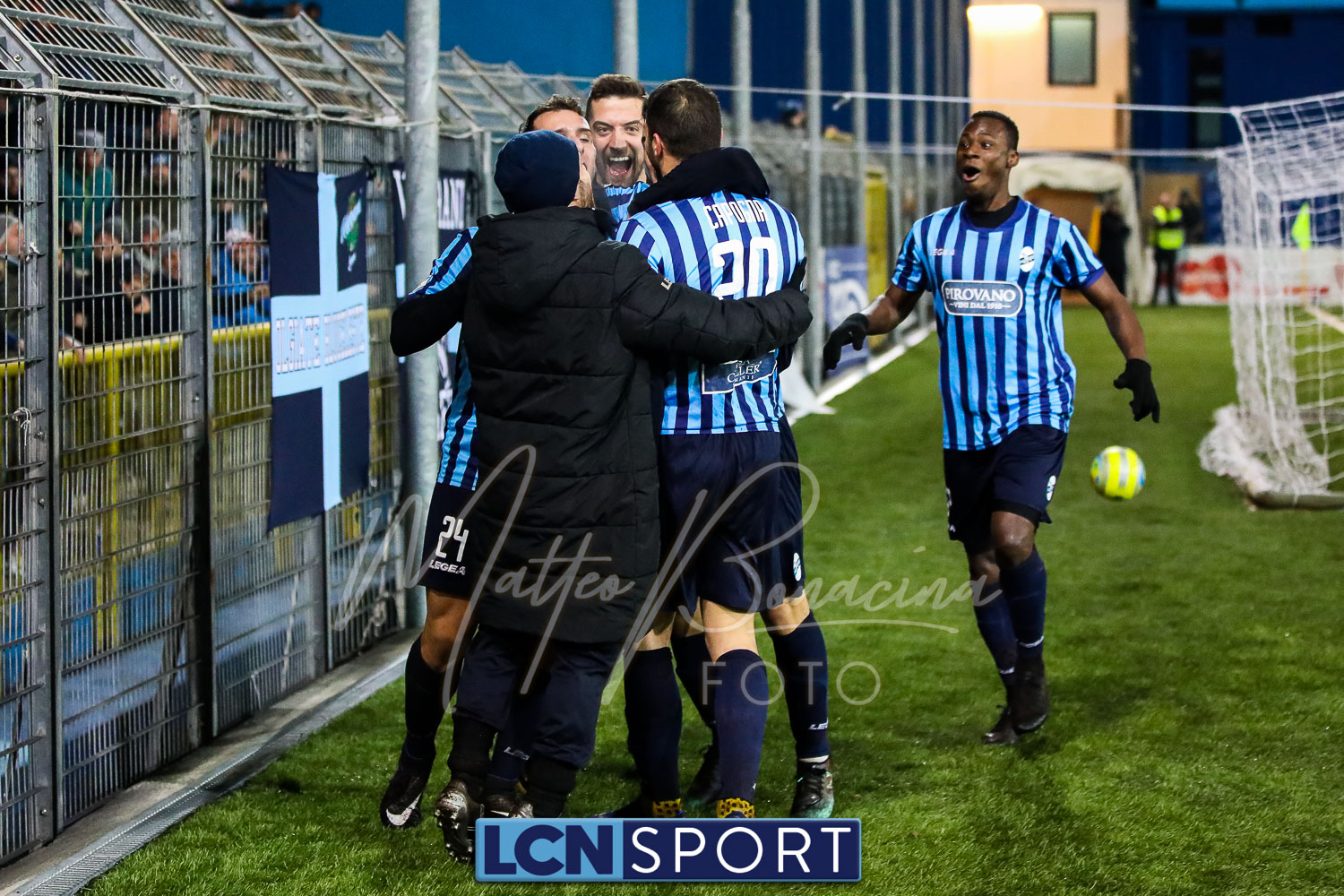 Le due formazioni rientrano in campo dopo quaranta minuti, in tempo per evitare la sconfitta a tavolino (il limite da regolamento è di 45′). Lo fa meglio il Novara, con la conclusione alta di Piscitella. Il Lecco si sveglia, prima con Giudici poi con D’Anna che al 64′ va fino in fondo e conclude direttamente sul portiere. Ma i blucelesti ci sono: Giudici e Strambelli combinano bene a sinistra, palla per D’Anna che crossa e Capogna, di testa, anticipa l’uscita di Marchegiani completando la rimonta. Passano tre minuti ed è 3-1: D’Anna si ritrova il pallone al limite destro dell’area, sterza, allunga e conclude con un missile sotto la traversa.