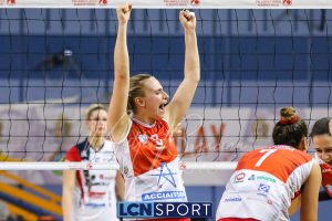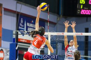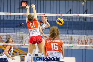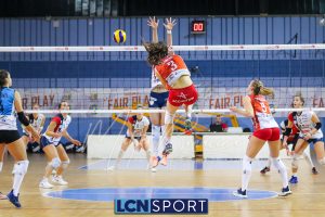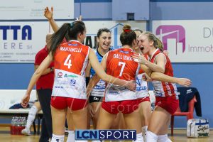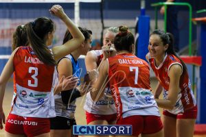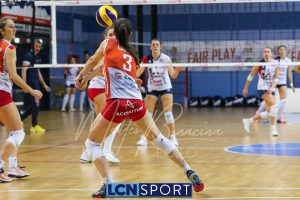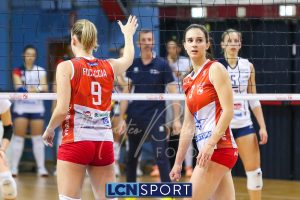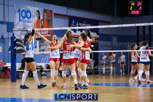 Top scorer e premiata Martina Martinelli (19 punti, 4 muri, 23% efficienza, +3 V-P), seguita da una positiva Arianna Lancini (17 punti, 3 muri, 26% efficienza, +7 V-P). In doppia cifra anche capitan Martina Focaccia (13 punti, +8 V-P) e Francesca Dalla Rosa (15 punti, +8 V-P). Decisamente in sofferenza la ricezione, che tocca il 27% in perfetta e il 42% in positiva.