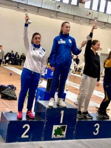 Medaglia d’argento anche per Ilaria Maugeri. Dopo 3 vittorie e 1 sconfitta nel girone, saltata la prima di diretta e vittoria nella seconda su Beschi (Minervium Cr) per 15-8; nella finale a 8 Ilaria ha avuto la meglio su Galetti (Ge Voltri) per 15-14. Nella semifinale successo su Guido (Arcore) 15-10 accedendo così alla finalissima nella quale ha ceduto alla Minonzio (Va) per 6-15.