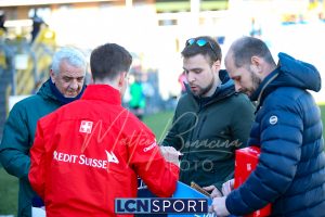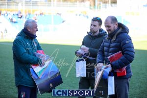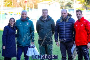 A metà gara scambio di doni tra Italia, rappresentata da Evaristo Beccalossi, ex presidente bluceleste oggi capo delegazione azzurro accompagnato da Daniele Bizzozero, Svizzera, Comune di Lecco, nelle vesti dell’assessore Roberto Nigriello, e Calcio Lecco, rappresentata dal responsabile del settore giovanile Paolo Pennati.