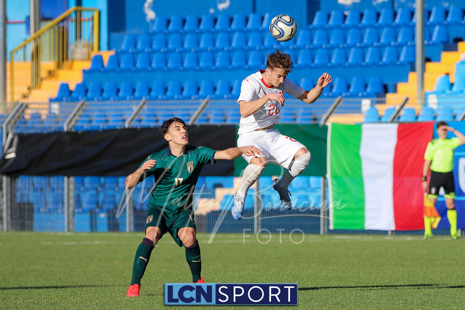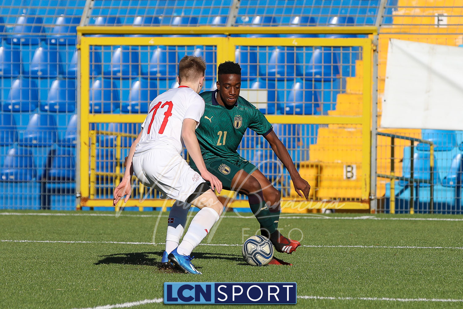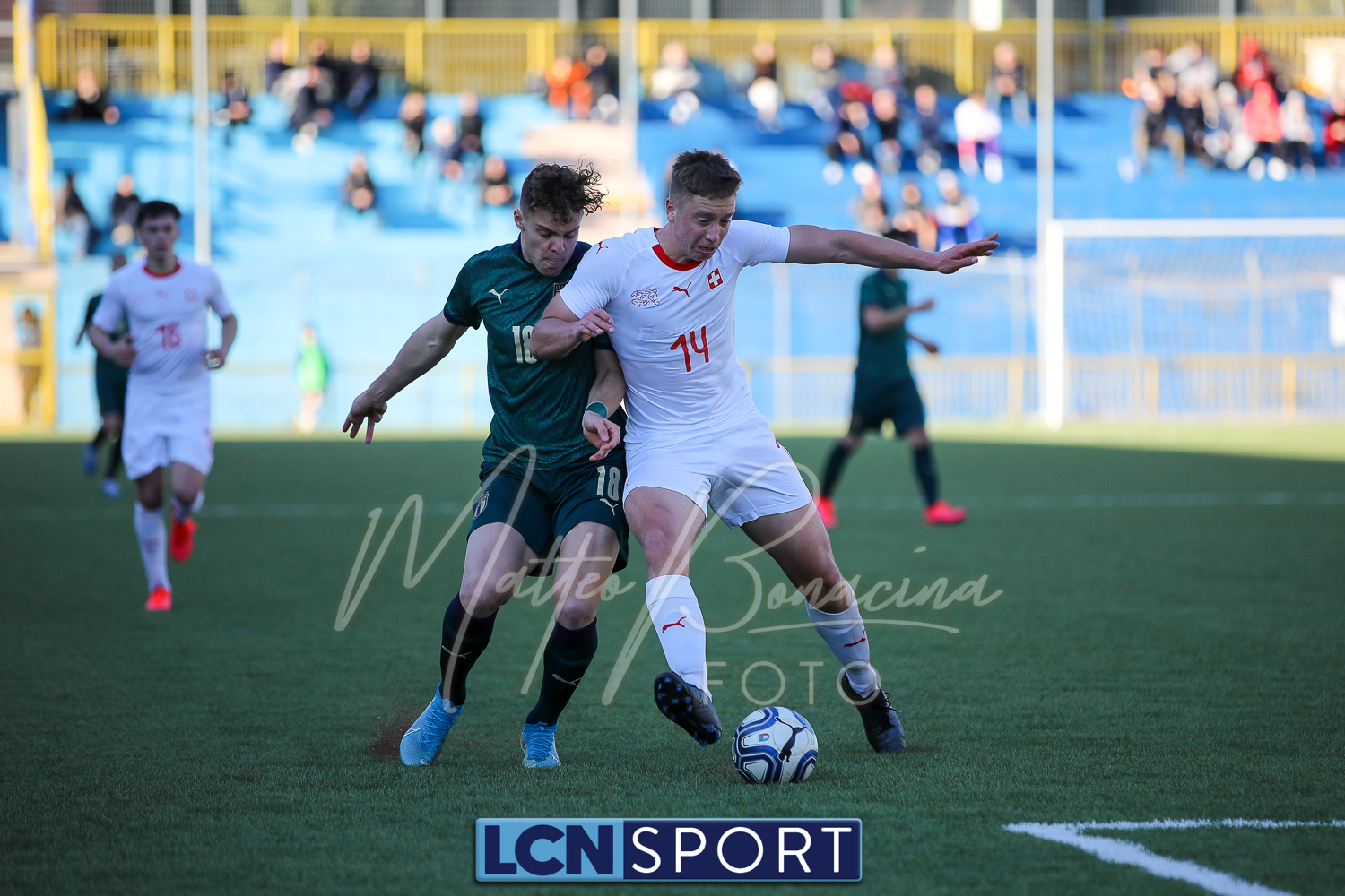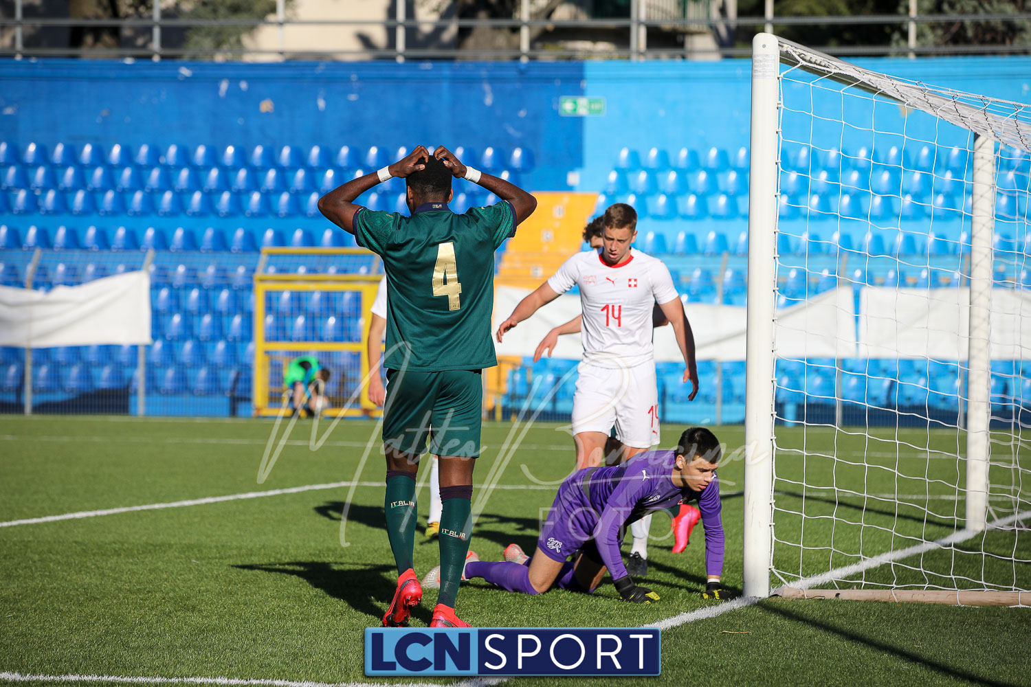 Nella ripresa l’Italia si propone svariate volte nei pressi dell’area elevetica, con un pericoloso tiro di Tongya al 53’ e una zuccata di Okoli al 60’. Nuovamente un’iniziativa pericolosa di Piccoli al 67’ e una conclusione ancora una volta dello juventino Tongya a dieci dal termine impensieriscono Falk, ma senza trafiggerlo.