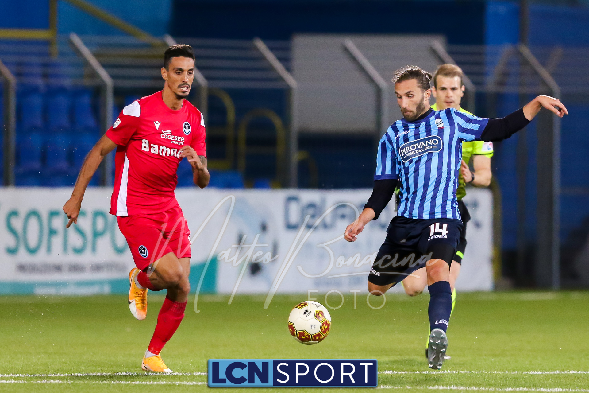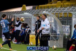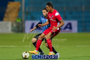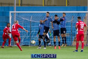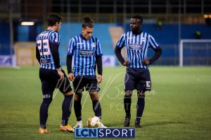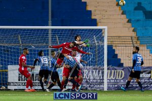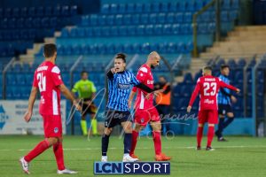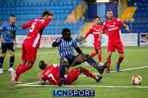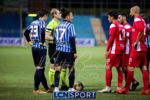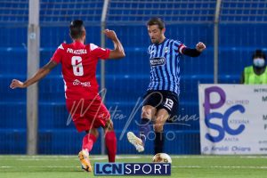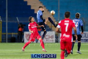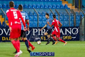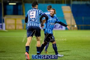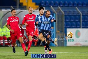 Minuto 13′, conclusione da lontano da parte di Capogna, parata facile per Zanellati. Minuto 21: brivido nell’area piccola bluceleste, intervento maldestro di Bertinato dal corner. Mastroianni si accende al 23′, cross dalla destra pennellato da Celjak sulla testa del numero 9 che si avvita e impegna il portiere ospite in corner. Al 31′ Capogna recupera un pallone che sembra morto e mette in mezzo, Mastroianni ha i tempi giusti ma non riesce a metterla in rete da posizione ravvicinata. Al 40′ ancora Capogna a servire D’Anna che svirgola in Curva Nord. Finale con altra occasione per Mastroianni, avvitamento e conclusione aerea alta.