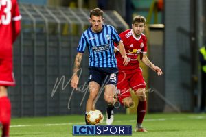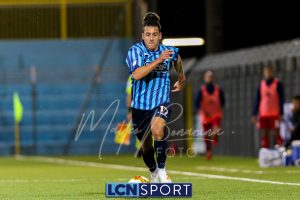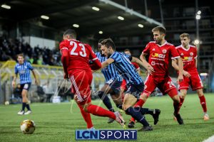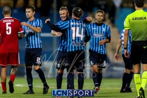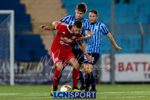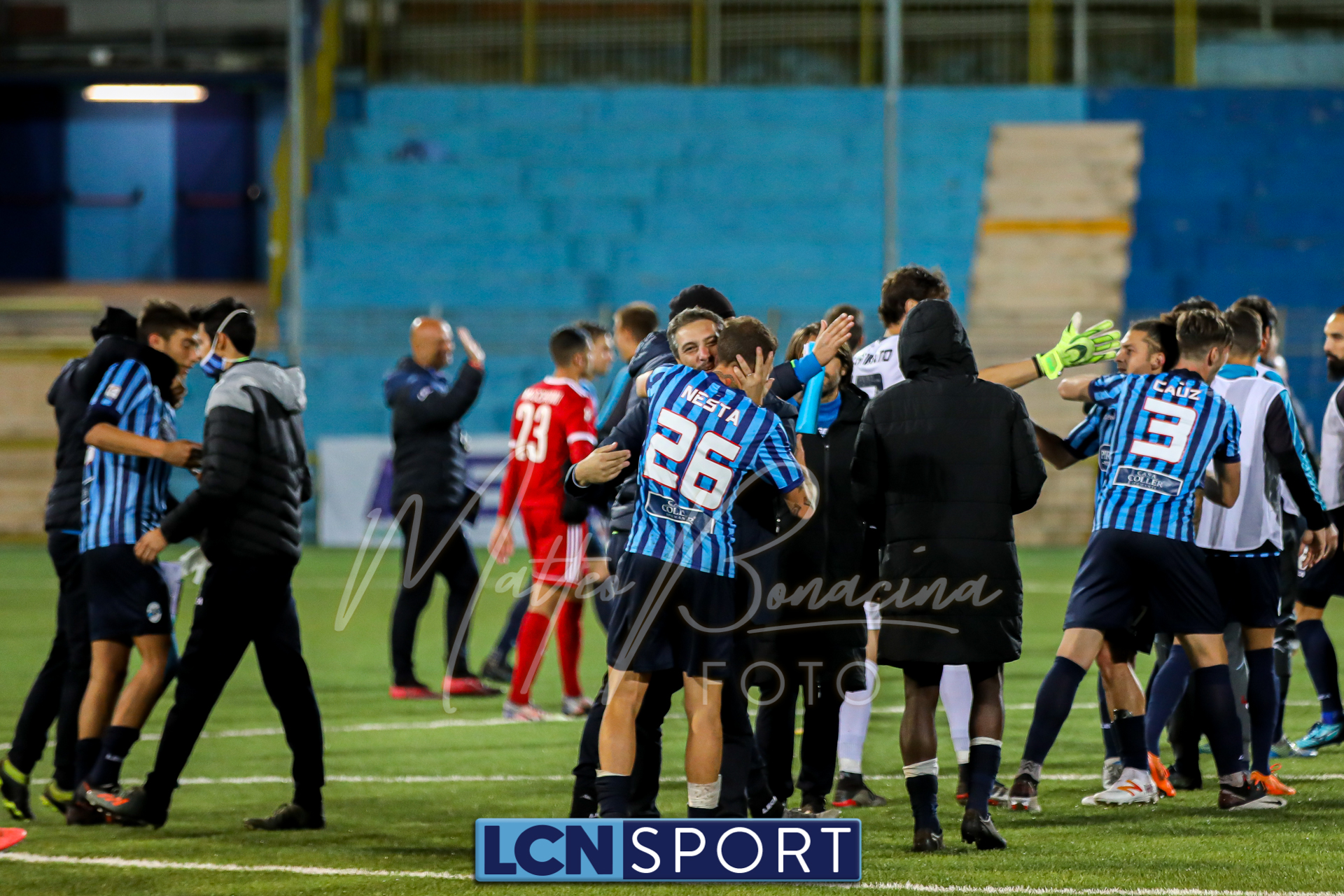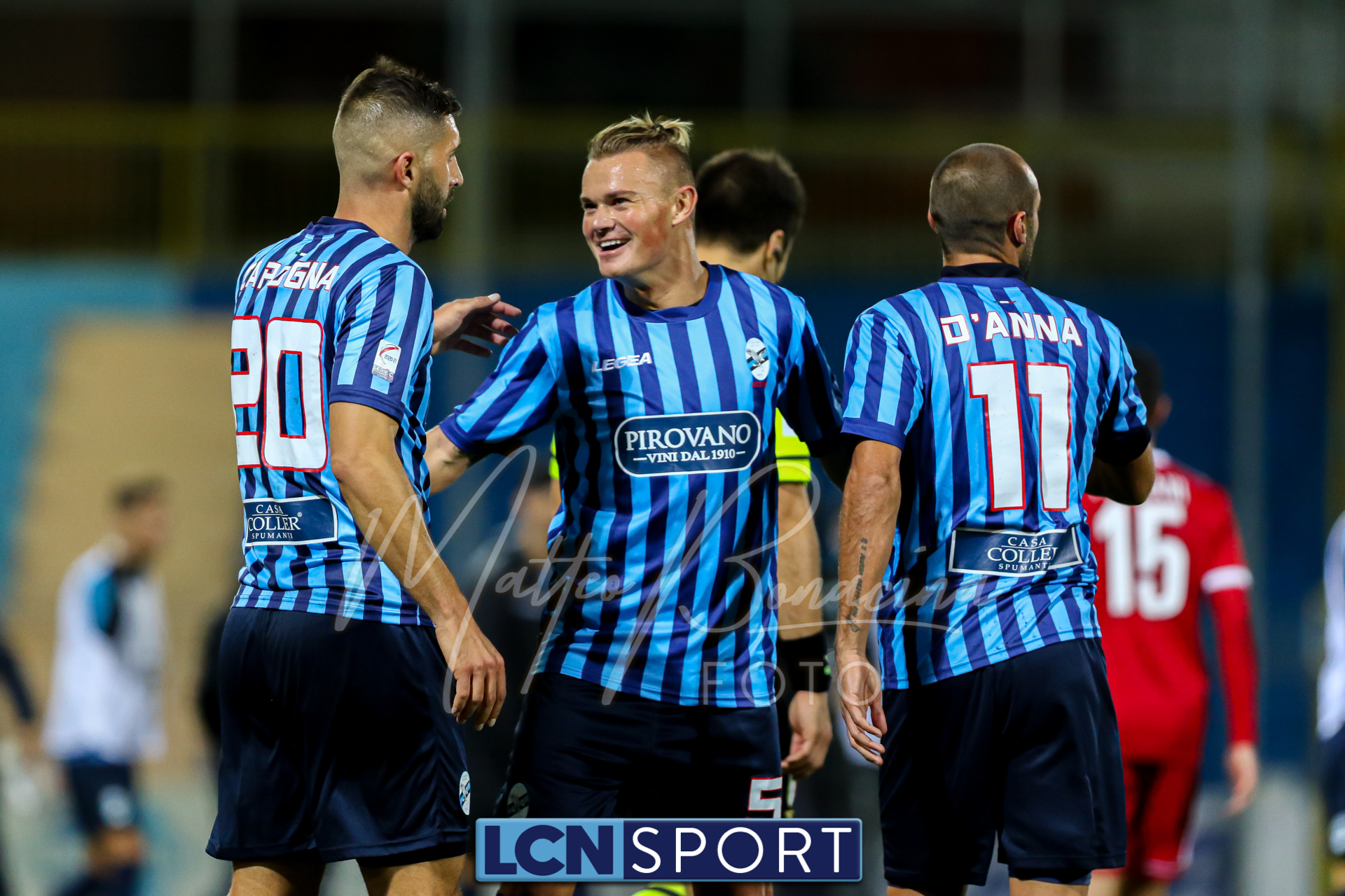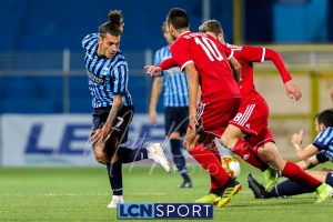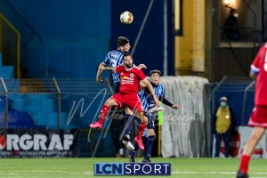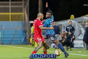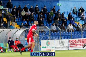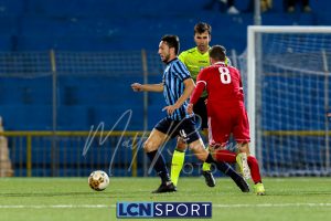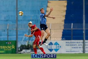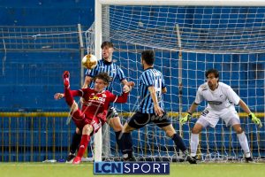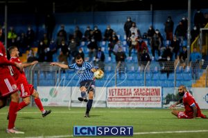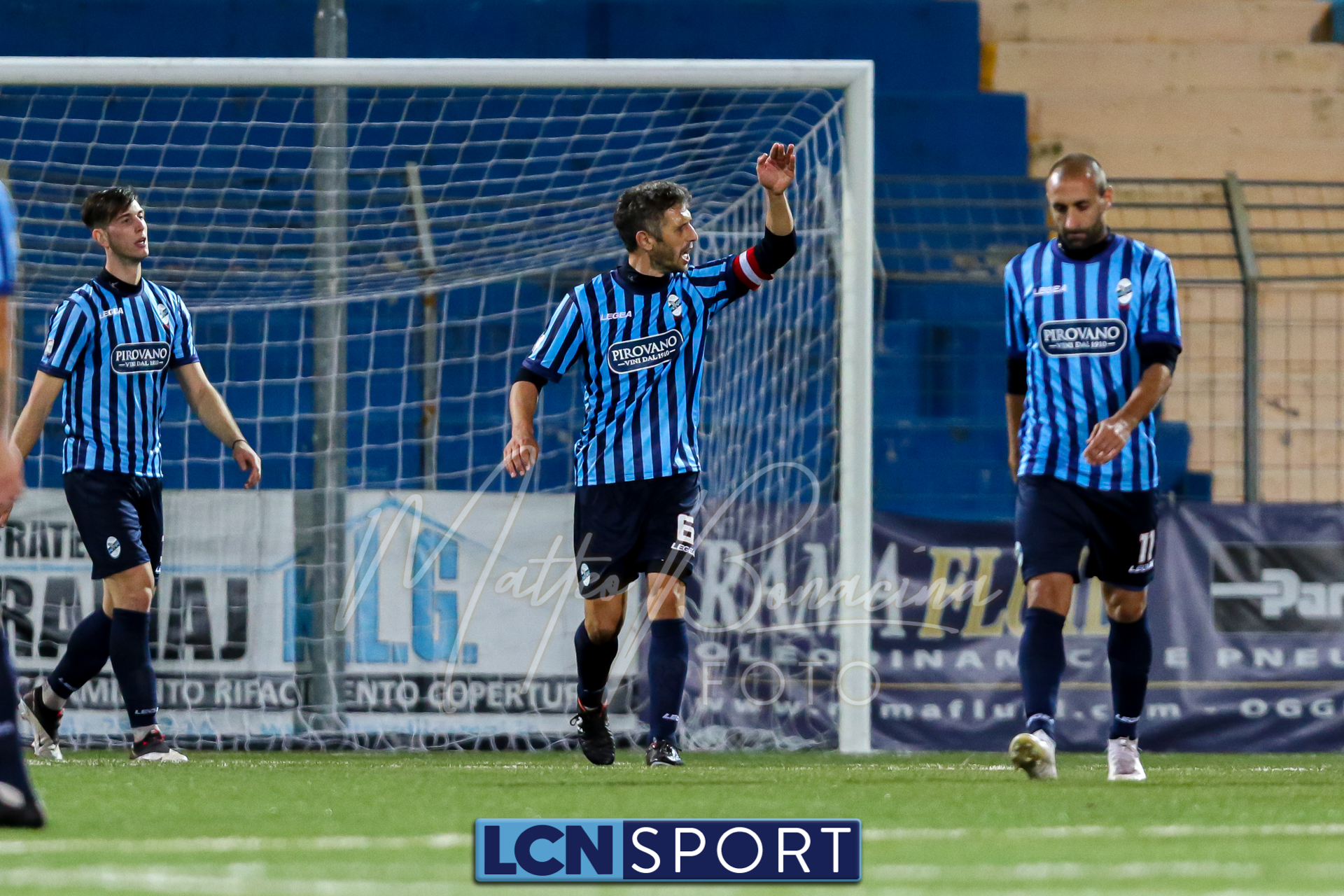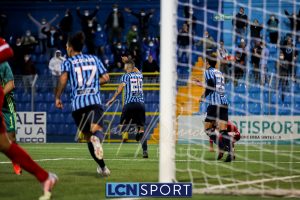 All’80’ Iocolano conduce la ripartenza con un tre contro due, scarica a sinistra su Capogna che fa un capolavoro sterzando dal mancino sul destro: conclusione di interno e palo pieno.