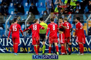 Spettacolare azione del Lecco al 67′: a sinistra uno due Capoferri-Mangni, cross dentro per Capogna, subentrato a Mastroianni, piattone e gol ma in leggero fuorigioco.
