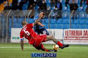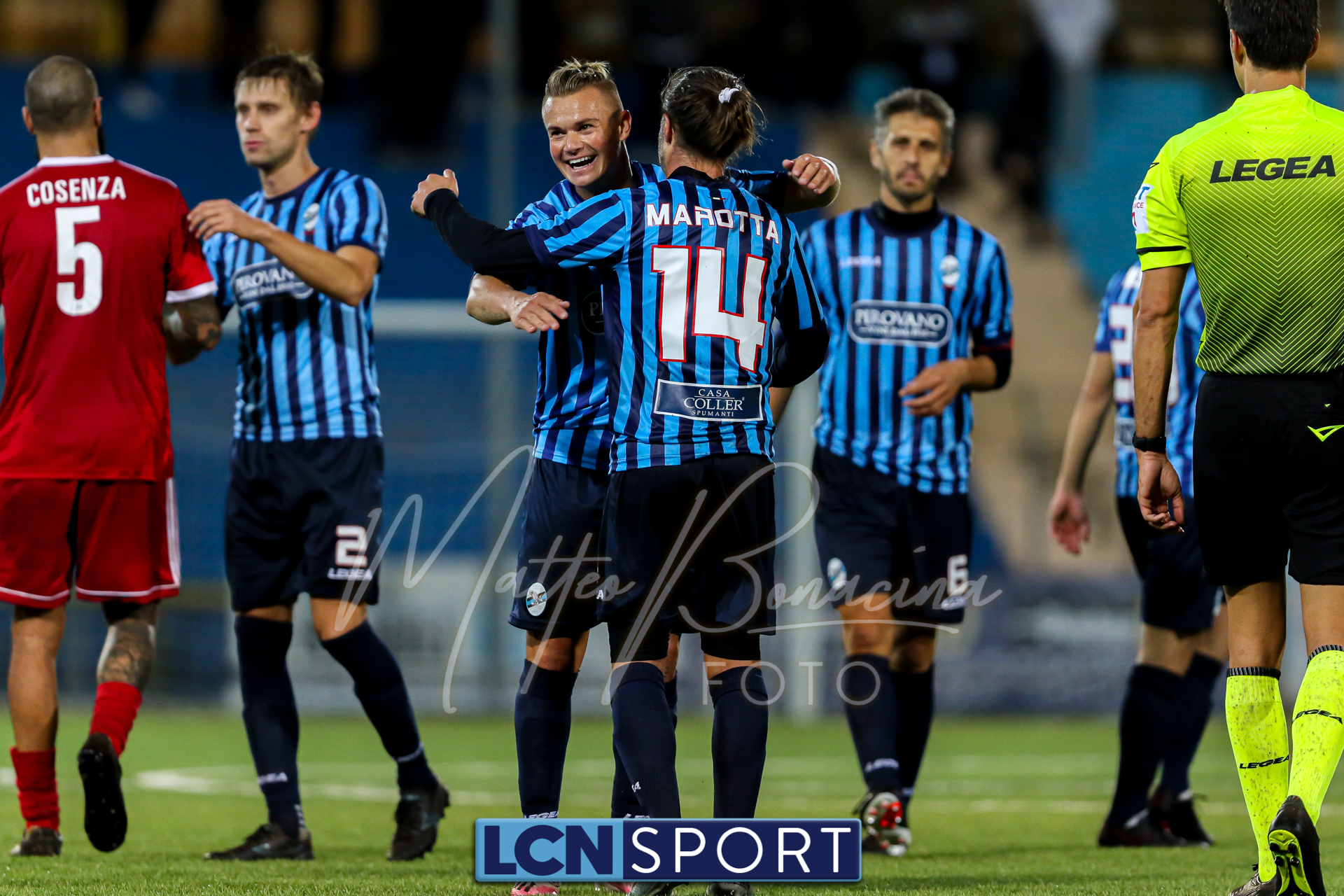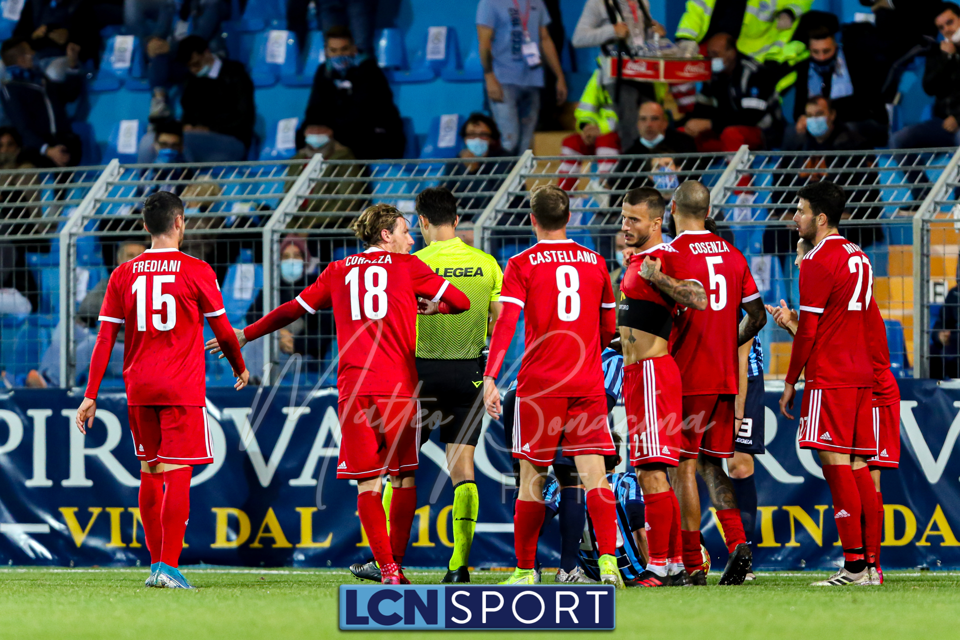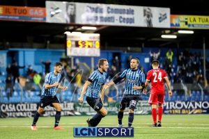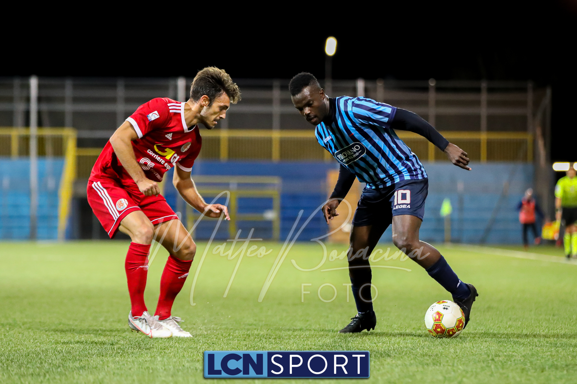 Subito brivido a inizio ripresa con la conclusione dai trenta metri di Casarini, che non va lontano dal palo; al 49′ Mastroianni prende palla dalla stessa posizione, ma sul mancino, e conclude alto. Minuto 54, il numero nove bluceleste lancia lungo per l’inserimento di Mangni che viene anticipato di pochissimo dall’uscita di Crisanto. Poco dopo punizione di Iocolano dal vertice sinistro dell’area, morbido tra le braccia del portiere ospite. Al 60′ si vede finalmente Corazza che dal vertice dell’area piccola prova la rovesciata, alzandola sopra la traversa.