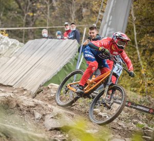 Il percorso lungo e molto fisico della “Black Line” di St. Gree, località in provincia di Cuneo, ha fatto da teatro alla 30^ edizione dei Campionati Assoluti d’Italia di downhill. Con partenza a quota 1.600 metri e arrivo a 1.050, il tracciato si è rivelato molto tecnico fin dalle prime prove dove i piloti hanno trovato un terreno molto scivoloso a causa delle abbondanti piogge cadute nei giorni precedenti la gara. Il fondo si è poi progressivamente scavato per i molti passaggi sulla terra bagnata creando dei veri e propri canali che insieme al graduale affiorare delle rocce e delle radici hanno reso davvero difficoltosa la discesa finale.