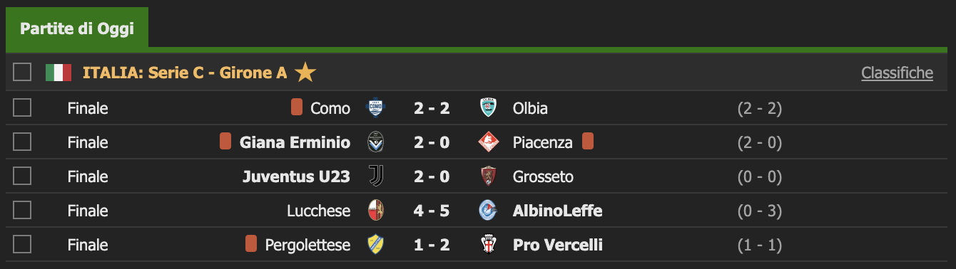 Giornata importante per il girone “A” di Serie C. Alle ore 15, infatti, sono scese in campo ben dieci squadre per procedere con i recuperi di quinta e terza giornata d’andata. Al termine dei novanta minuti la Pro Vercelli (12 partite) ha guadagnato il primo posto in classifica grazie al tardivo successo colto sul campo della Pergolettese, mentre sono da registrare i passi in avanti di Juventus U23 (11), Albinoleffe (12) e Giana Erminio (12); cadute al loro cospetto Grosseto (12), Lucchese (11) e Piacenza (11). Pareggio con gol, infine, tra Como (11) e Olbia (12). In virtù dei risultati odierni la Calcio Lecco (12) mantiene la propria posizione al quarto posto della classifica.