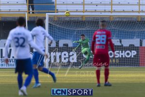 Al 57′ il Lecco guadagna un rigore sacrosanto: è bravo Marotta, appena entrato per Moleri, ad avviare di prima l’azione, Kaprof rifinisce per D’Anna che entra in area e viene steso da Franco. Sul dischetto va lo stesso numero 11 bluceleste che angola bene ma Livieri, che ben lo conosce, si distende e lo para.