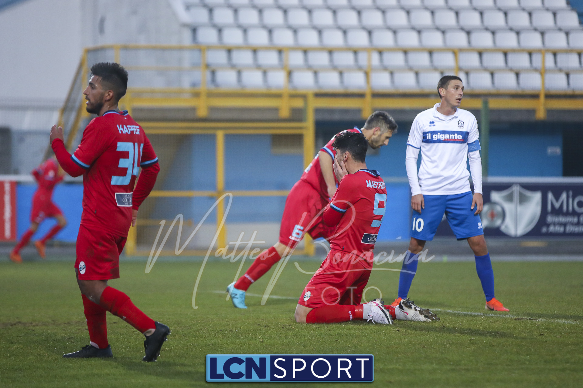 Pro Sesto (4-3-3): Livieri; Franco, Pecorini, Caverzasi, Bosco (dal 29′ s.t. Bosco); Di Munno (dal 12′ s.t. Maffei), Gattoni, Giubilato; Cominetti, Mutton (dal 1′ s.t. De Respinis), Scapuzzi (dal 40′ s.t. Parrinello) (Del Frate, Maldini, Ntube, Miscioscia, Motta, Costa, Murati) All. Parravicini.