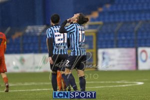 La partita si sblocca alla mezzora, dopo un rischio in area bluceleste su cui è bravo Pissardo: Marotta propizia l’azione di Iocolano, che calcia in mezzo all’area e colpisce la mano di un avversario, Solerio. Rigore senza esitazione che Capogna trasforma con una botta centrale a mezza altezza. La reazione dei toscani non c’è, da segnalare il rasoterra fuori di Spinozzi al 37′. Ma il Lecco c’è e la qualità si vede: palla dentro di Nesta, Capogna la sbuccia ma sul rimpallo Iocolano, alle sue spalle, non ci pensa due volte e batte a rete per il raddoppio.