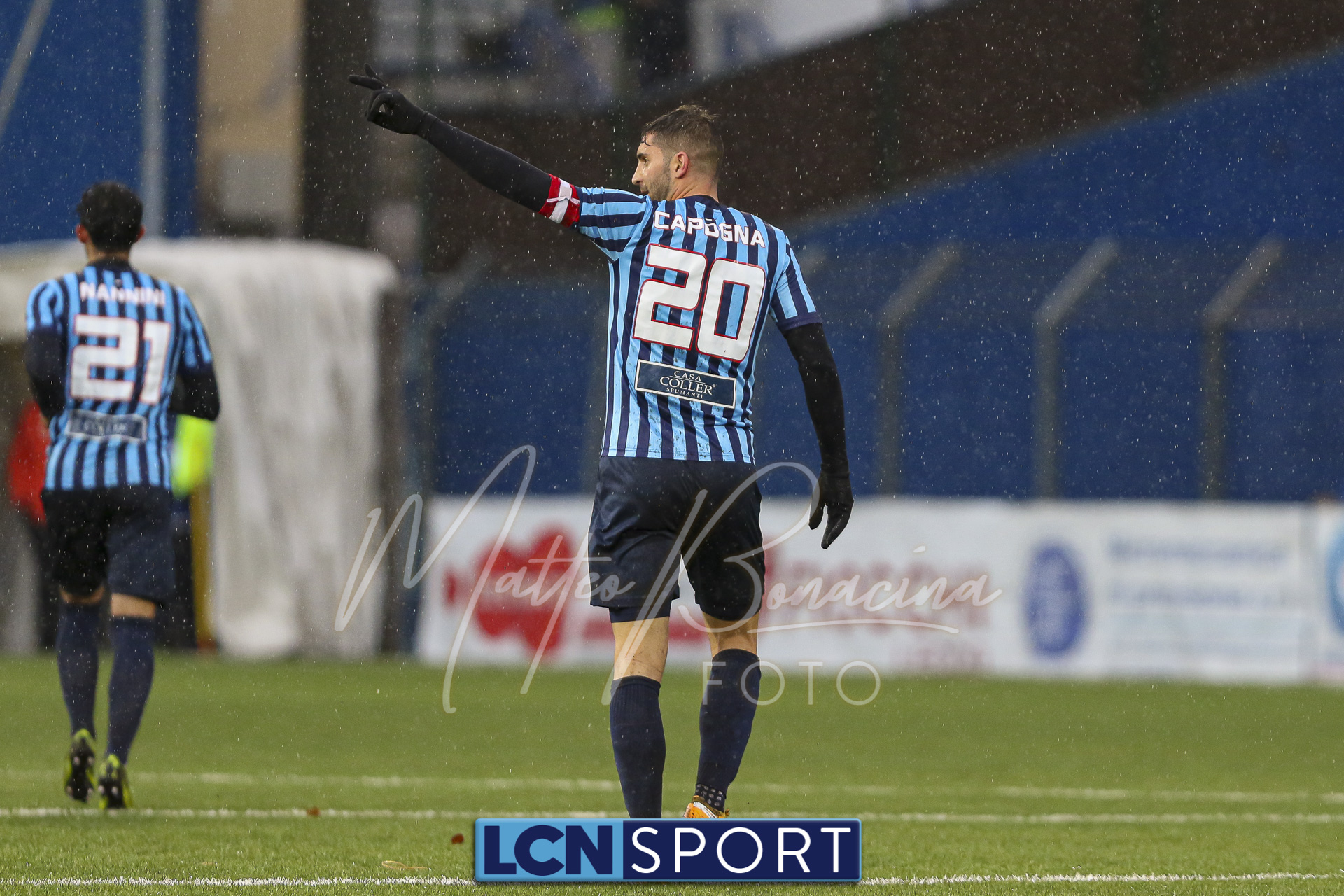 Il 5 giugno 2019 firma il suo rinnovo contrattuale e approda per la prima volta in terza serie nazionale all’età di 31 anni. Tardino, francamente, per uno che ha tutta quella qualità nei piedi. I recenti fasti della Serie D diventano subito un ricordo: Marco Gaburro, Mario Tesini, diesse, e Mauro Brambilla vengono esonerati all’inizio di ottobre, al loro posto arrivano mister Gaetano D’Agostino e il direttore tecnico Francesco Filucchi. La tifoseria prende tutt’altro che bene l’avvicendamento e il fatto che Capogna venga messo fuori dal gruppo squadra per 24 ore, con una telefonata che parte quasi istantaneamente da Sesto San Giovanni per vagliare la disponibilità al trasferimento. Il caso rientra e, pian piano, sul campo la situazione migliora; il 23 ottobre la stagione prende una svolta decisiva: è proprio una rete di Riccardo, nel finale di gara, che regala il primo punto della nuova gestione tecnica, preludio di una scalata alla zona salvezza fermata dal sopraggiungere del Covid-19. A maggio il Lecco è ufficialmente salvo: lo score di Capogna parla di 4 gol e 1 assist in 24 partite, numeri che non lo soddisfano per niente.