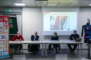 «Abbiamo delle ambizioni di tipo sportivo, sia per quanto riguarda la Prima Squadra che per l’attività giovanile – ha introdotto Dario Righetti, Presidente Pallavolo Lecco Alberto Picco -. Per giocare qui bisogna mettere davanti famiglia e scuola: ieri sera abbiamo festeggiato un’altra ragazza della “B1” (Fabiola Facchinetti, ndr) per la sua laurea. Alessandro Alippi, Direttore Sportivo della società, ha aggiunto: «Da marzo la società si è impegnata ad aiutare il territorio distribuendo il materiale di protezione individuale su un territorio che è andato da Colico a Lecco. In questi momenti è nato il contatto con la Fondazione: la Picco ha gestito 14 centri estivi all’interno della provincia, per un volume di circa 1300 bambini. La fase “3” di “Aiutiamoci” è supportata mediante la vendita di gadget marchiati #iosonoLecco, progetto nato insieme alla Calcio Lecco 1912. Le due sale formazione del Palataurus saranno mese a disposizione tre volte a settimana, due ore al giorno per “Picco School Camp”».