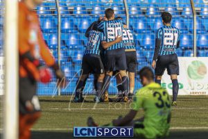 Minuto 64: tiro schiacciato di Nannelli, Pissardo para. D’Agostino rinforza il centrocampo con Foglia togliendo Kaprof e Iocolano, ma la luce si spegne e il Lecco perde venti metri di campo. D’Anna si fa vedere subito con la conclusione forte sul palo stretto dopo il tacco di Capogna, Coletta respinge. All’80’ ancora il numero 11 bluceleste serve Celjak che, in posizione centrale e favorevole, non si aspetta il pallone e viene sfavorito dal rimpallo su Coletta. All’87’ il patatrac: spizzata in area di rigore del Lecco, Petrovic la mette giù con un piede e con l’altro serve il liberissimo Adamoli, la cui conclusione di esterno si infila sotto l’incrocio. Finisce 2-2.
