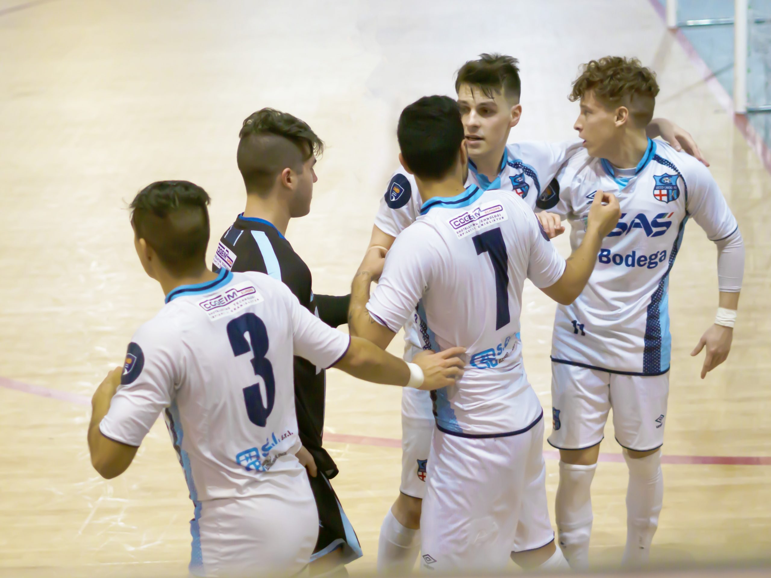 La ripresa si apre con il sorpasso bluceleste. A siglarlo, dopo 41″ secondi, all’ultimo disponibile con l’uomo in più, è capitan Iacobuzio, bravo di tacco a beffare Cossu a distanza ravvicinata su assist di Hartingh. Il Lecco sembra padrone di campo, ma al 6′ la schiena di Mentasti è sulla traiettoria di un tiro da fuori di Cabitza. La deviazione è decisiva e Di Tomaso è battuto per la seconda volta. Sul 2-2 il Lecco continua a fare gioco. Riccardi è pericoloso su azione d’angolo davanti a Cossu, Joao da posizione centrale si vede negare per due volte la gioia del gol dall’estremo difensore avversario, ma il 3-2 è proprio merito suo, infilando Cossu tra le gambe servito a tu per tu da Scarpetta al 15′. Da segnalare poco prima anche un palo di Castillo. Al 19′ la gara si chiude con il poker siglato da Scarpetta, mentre nei secondi finale c’è gloria anche per Di Tomaso che nega il 4-3 a Serginho. Il Lecco vola e ora la testa va alla Domus Bresso, ospite al Palataurus martedì alle 19.