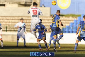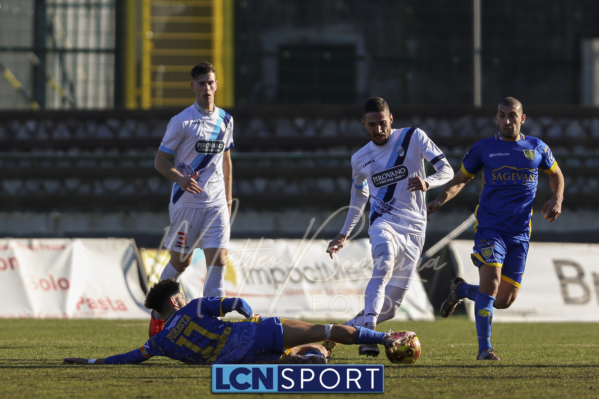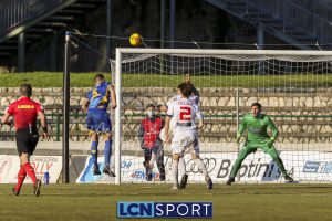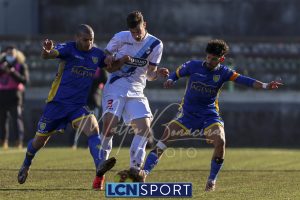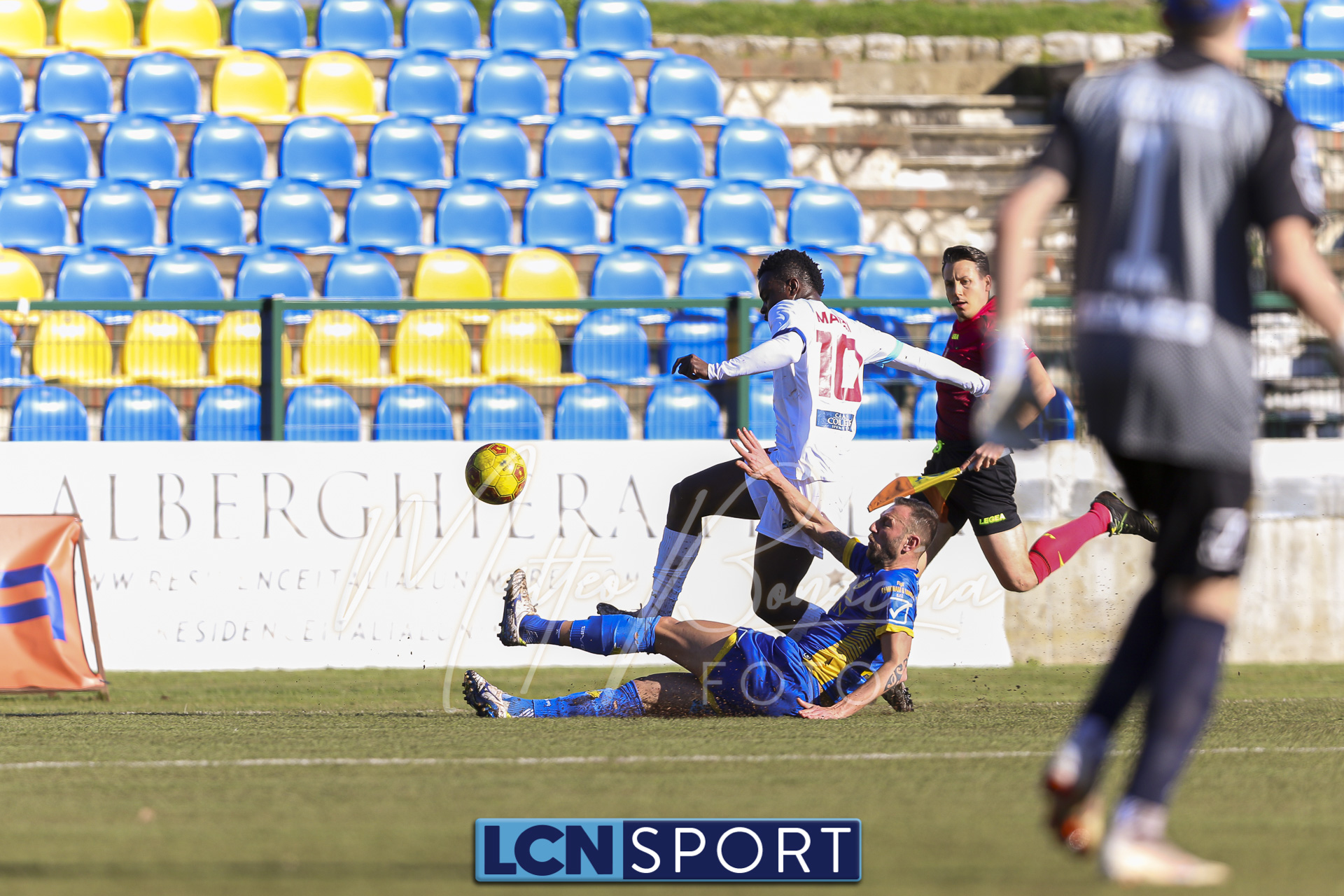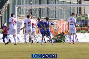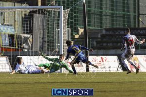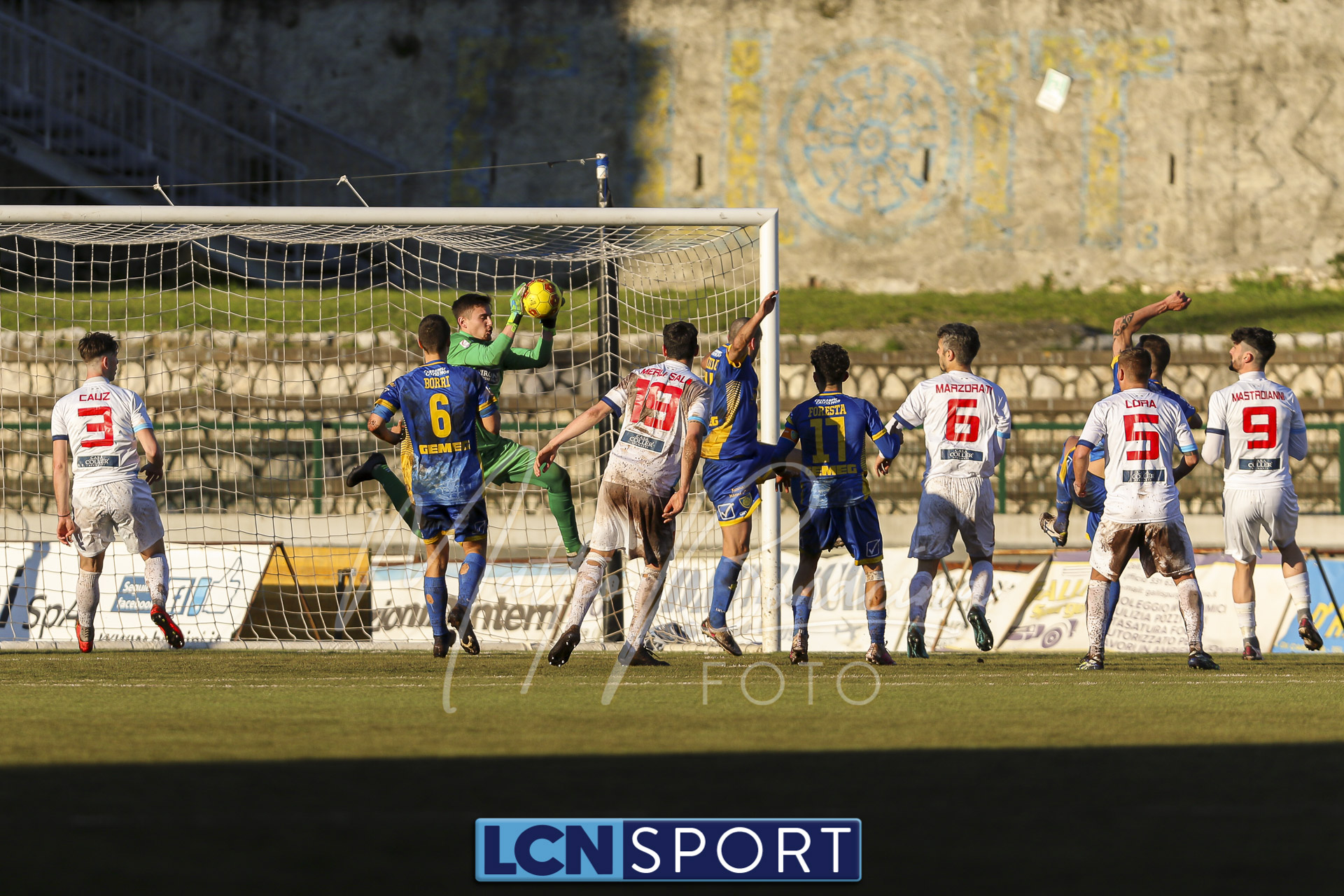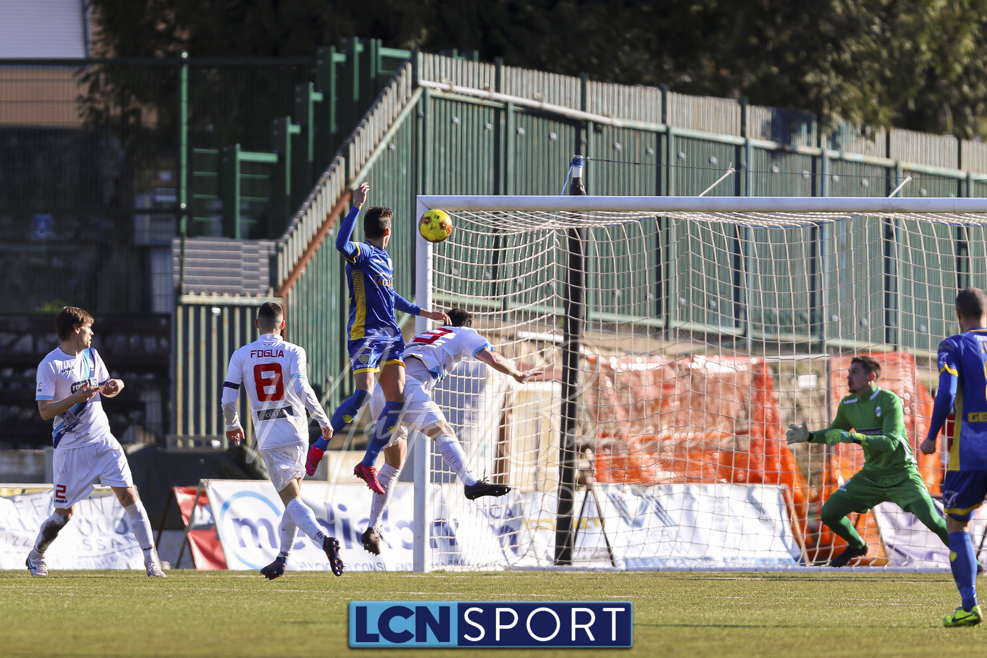 Prima occasione sui piedi di Iocolano lanciato a rete, il tentativo di servire Mangni che segue l’azione a sinistra viene sventato dalla difesa. Al 60′, dagli sviluppi di punizione (assolutamente involontario il presunto fallo di mano di Marotta), Valiatti crossa da destra, Murolo si inserisce in posizione dubbia e colpisce di testa, centrando la traversa: sul rimpallo Marilungo ha il tempo di battere a rete accorciando le distanze.