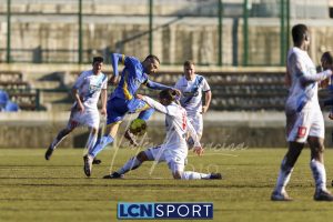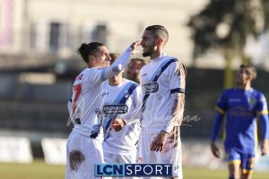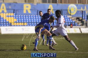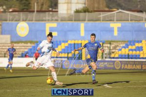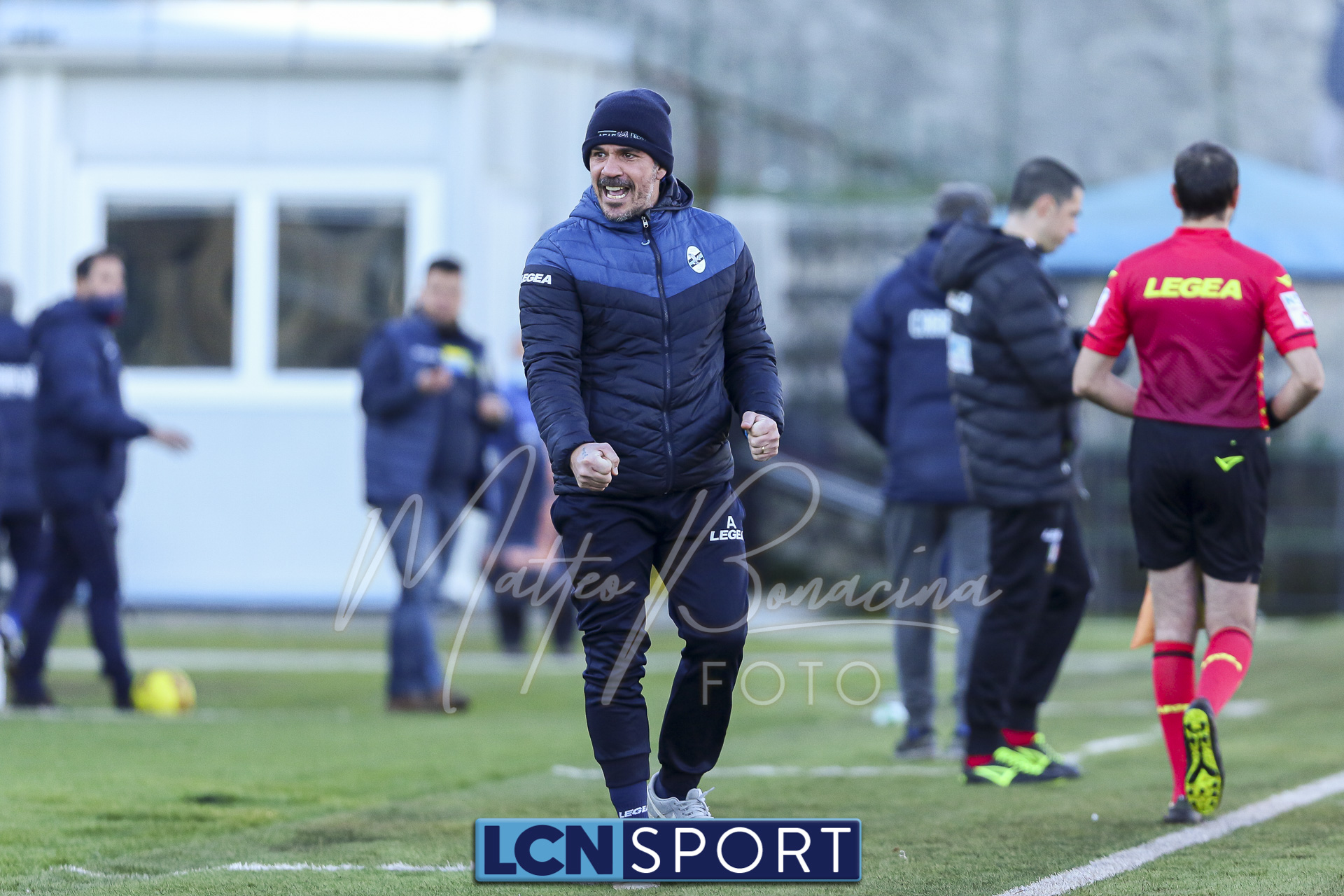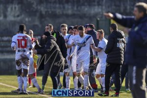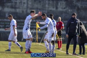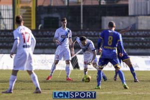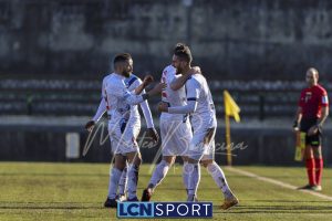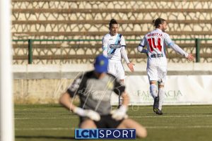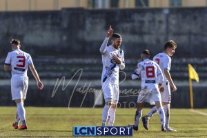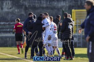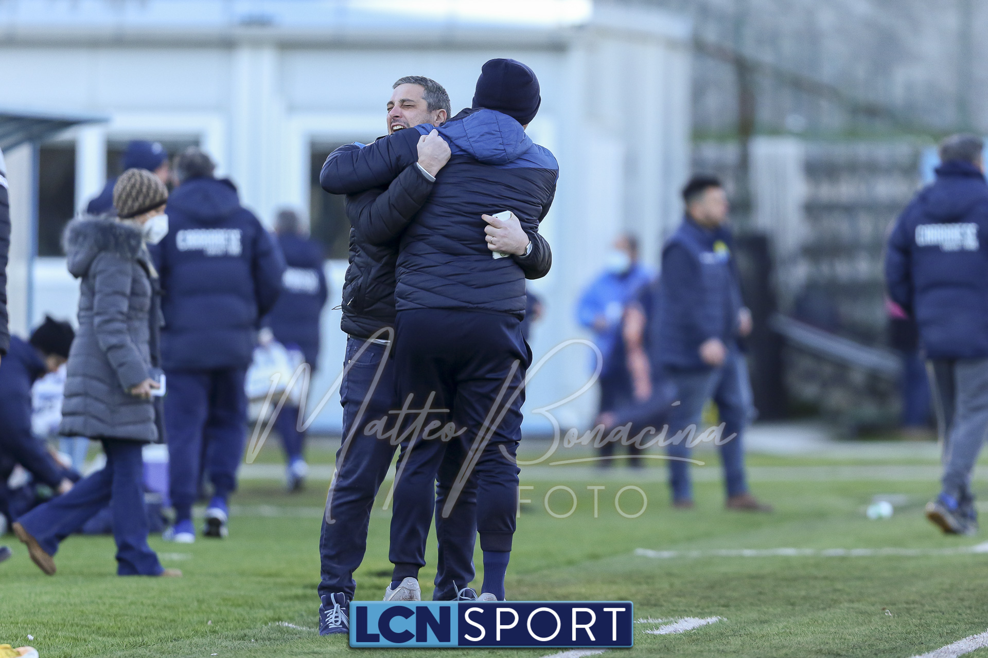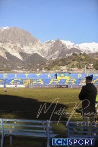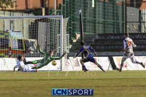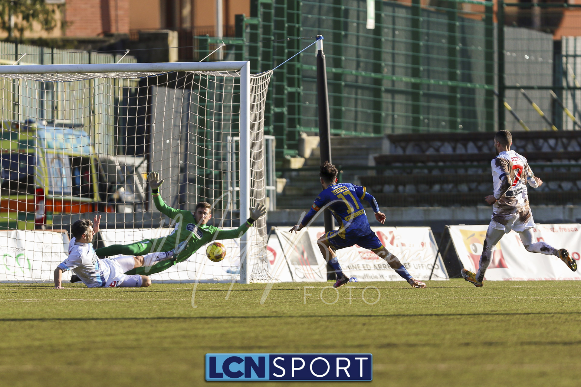 La Carrarese ci prova con la botta di Murolo, centrale, facile per Pissardo. Succede poco fino al 37′: conclusione rasoterra di Foresta e miracolo in coabitazione tra Marzorati e il portiere bluceleste per salvare il risultato. Al 42′ Marotta (entrato per Bolzoni) recupera palla e apre sulla destra per Iocolano che non ci pensa su e trafigge Pulidori con un preciso diagonale sul palo lontano. Si va al riposo sul 2-0.