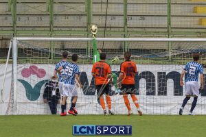 Al 53′ la prima grande azione palla a terra del Lecco, con i tempi giusti e gli uomini ad accompagnare, fa guadagnare un calcio d’angolo: Iocolano batte bene e Masini anticipa tutti sul primo palo per il gol del vantaggio.