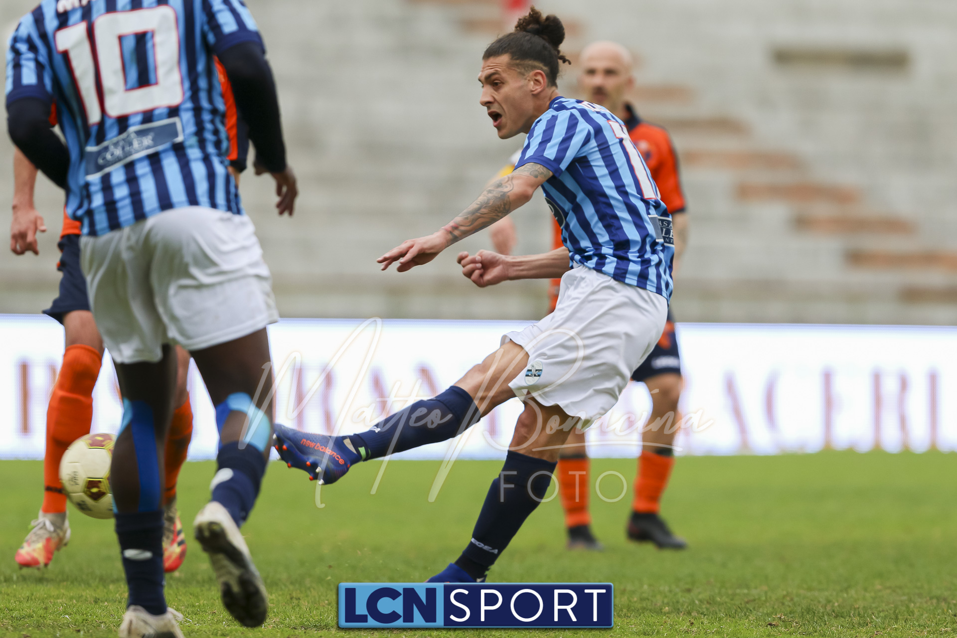Capogna ancora ha un grandissima chance, dopo l’uno-due Masini-Celjak, al 18′, la conclusione al volo è imprecisa. Ancora Capogna, colpo di testa in avvitamento da posizione defilata dal cross di Capoferri, fuori misura. Finale di tempo con il Lecco che concede qualcosa agli avversari: cross sporco con Chinellato in agguato a girarla, Pissardo interviene smanacciando in angolo. Da una punizione defilata dei padroni di casa ancora l’ex centravanti bluceleste stacca e non inquadra la port di poco. Il tempo si chiude con l’ennesimo tentativo di Capogna, dagli sviliuppi di corner, non lontano dalla traversa.