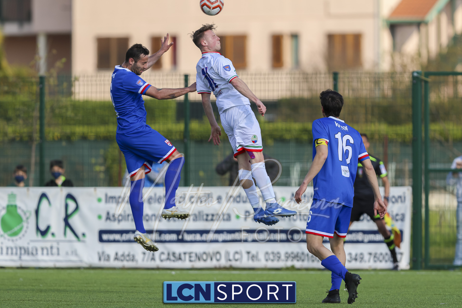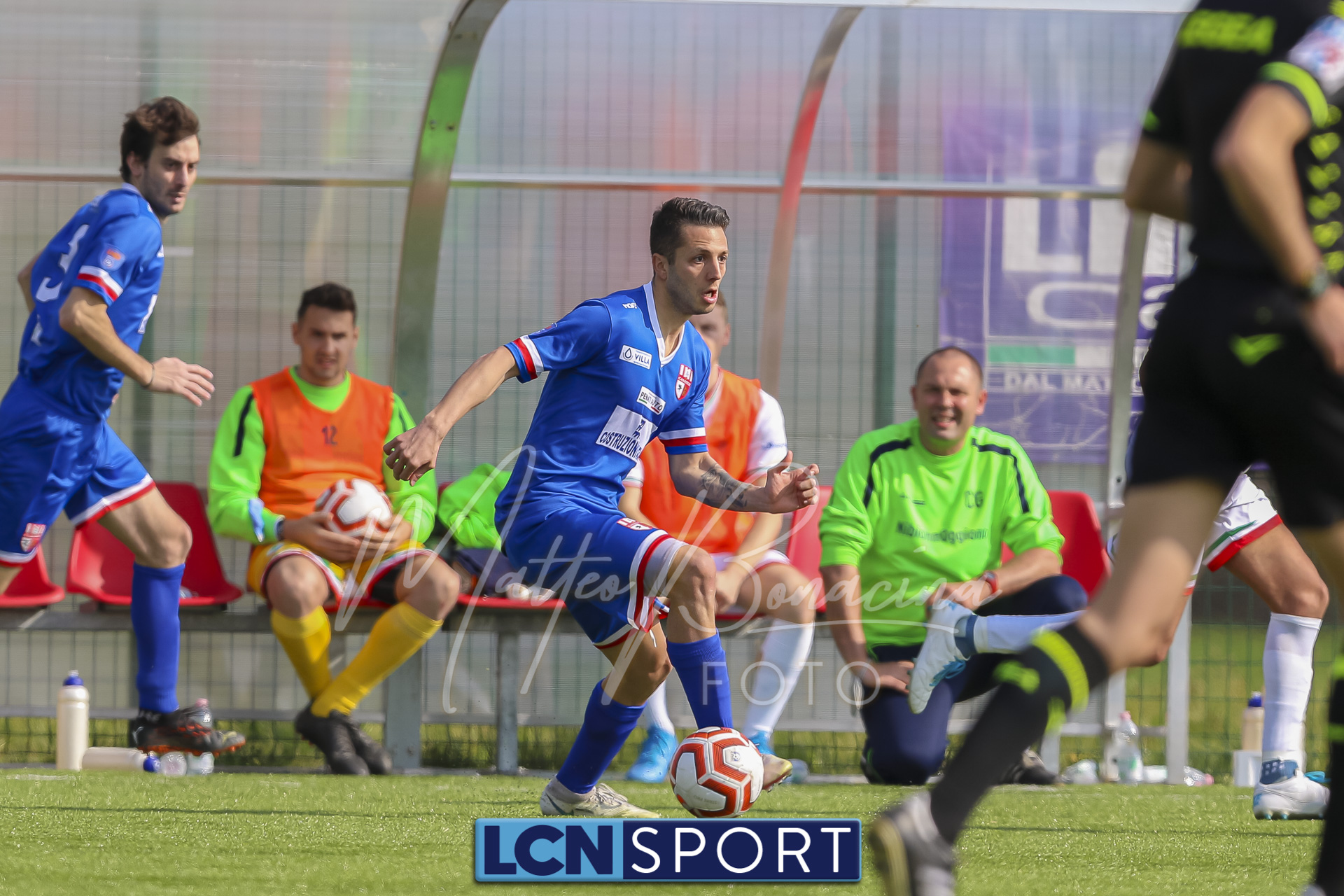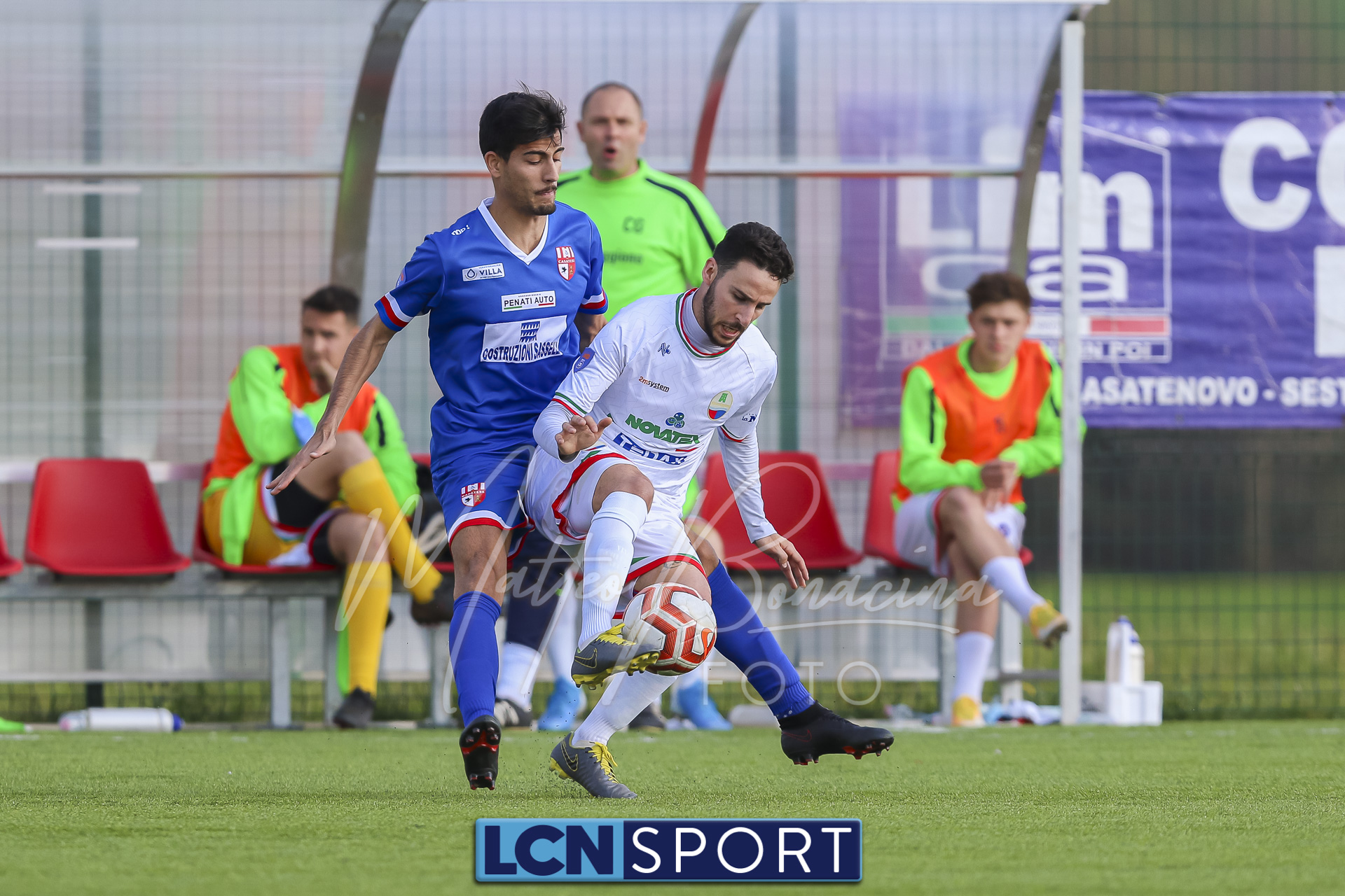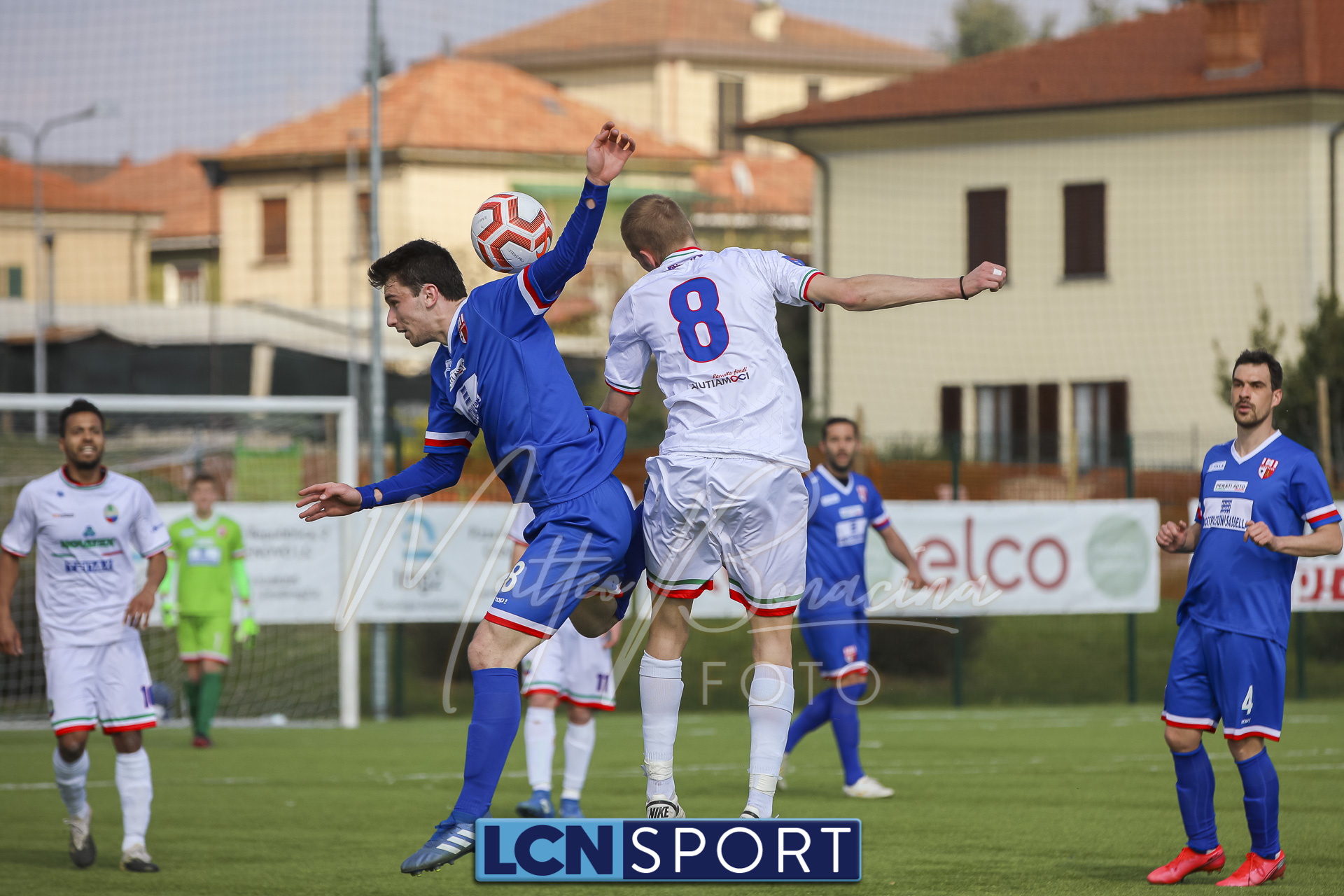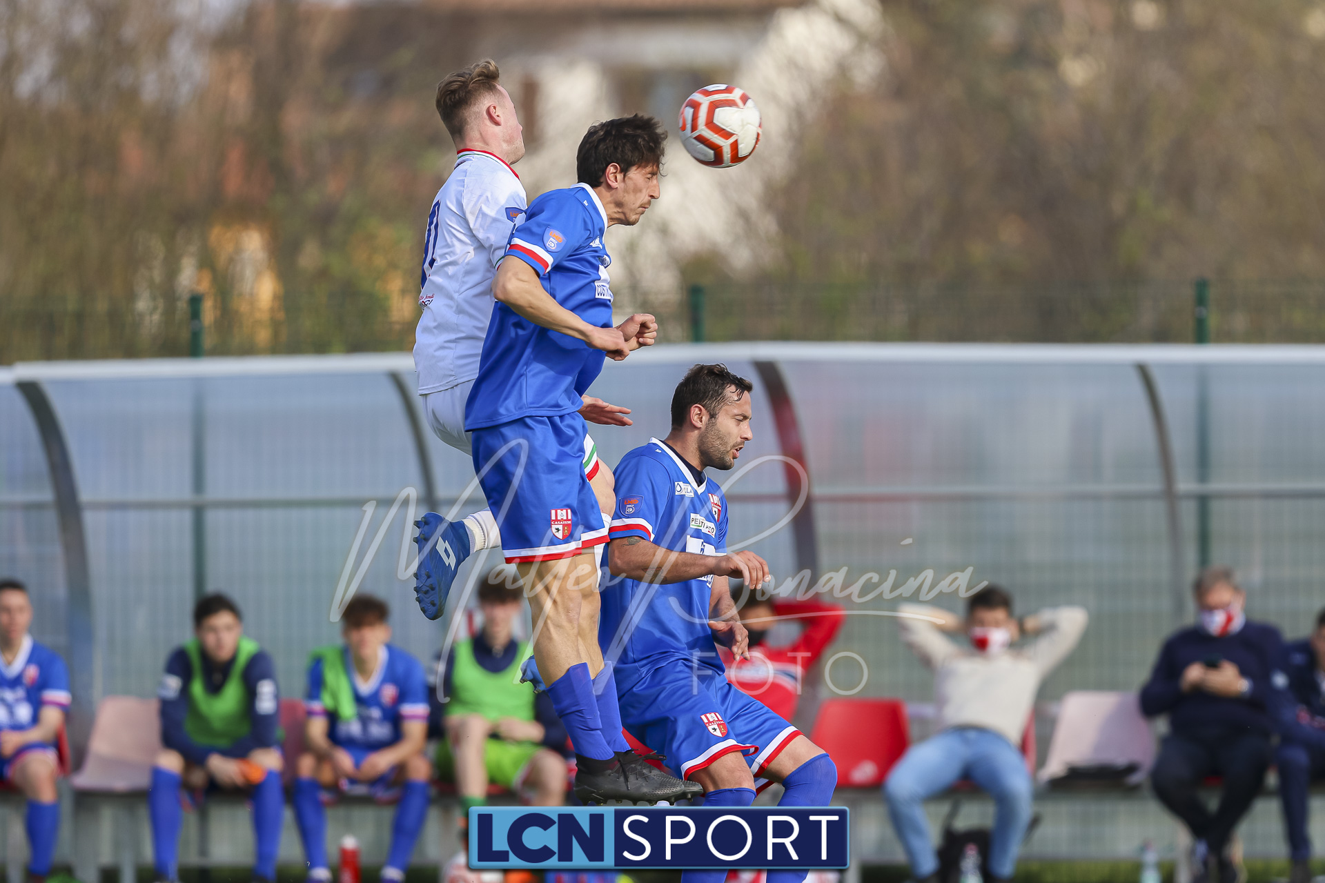 Dall’altra parte del campo la capolista fa molta fatica incidere, anche a causa delle concomitanti assenze di Guillermo Pèrez per squalifica e Roberto Candido per infortunio: sui tanti lanci lunghi di Perego, Bello e Baldan il centrale ospite Antonini Lui disputa una partita strepitosa in marcatura su Isella, che oltre il novantesimo reclama un rigore per un contatto in area proprio con il difensore italobrasiliano, al pari dei compagni di reparto mentre nè Sordillo, destro da fuori al 45′, nè Pontiggia, conclusione da ottima posizione al 95′, riescono a trovare i tre pali difesi da Guarino. A poco vale la gran quantità di attaccanti che mister Danilo Tricarico manda in campo nel corso della ripresa, perché gli spazi strettissimi in cui devono muoversi i quattro attaccanti biancorossi regalano un paio di palle interessanti al solo Gaeta, ma l’attaccante non trova lo spunto giusto per mettere a segno la prima rete in biancorosso.