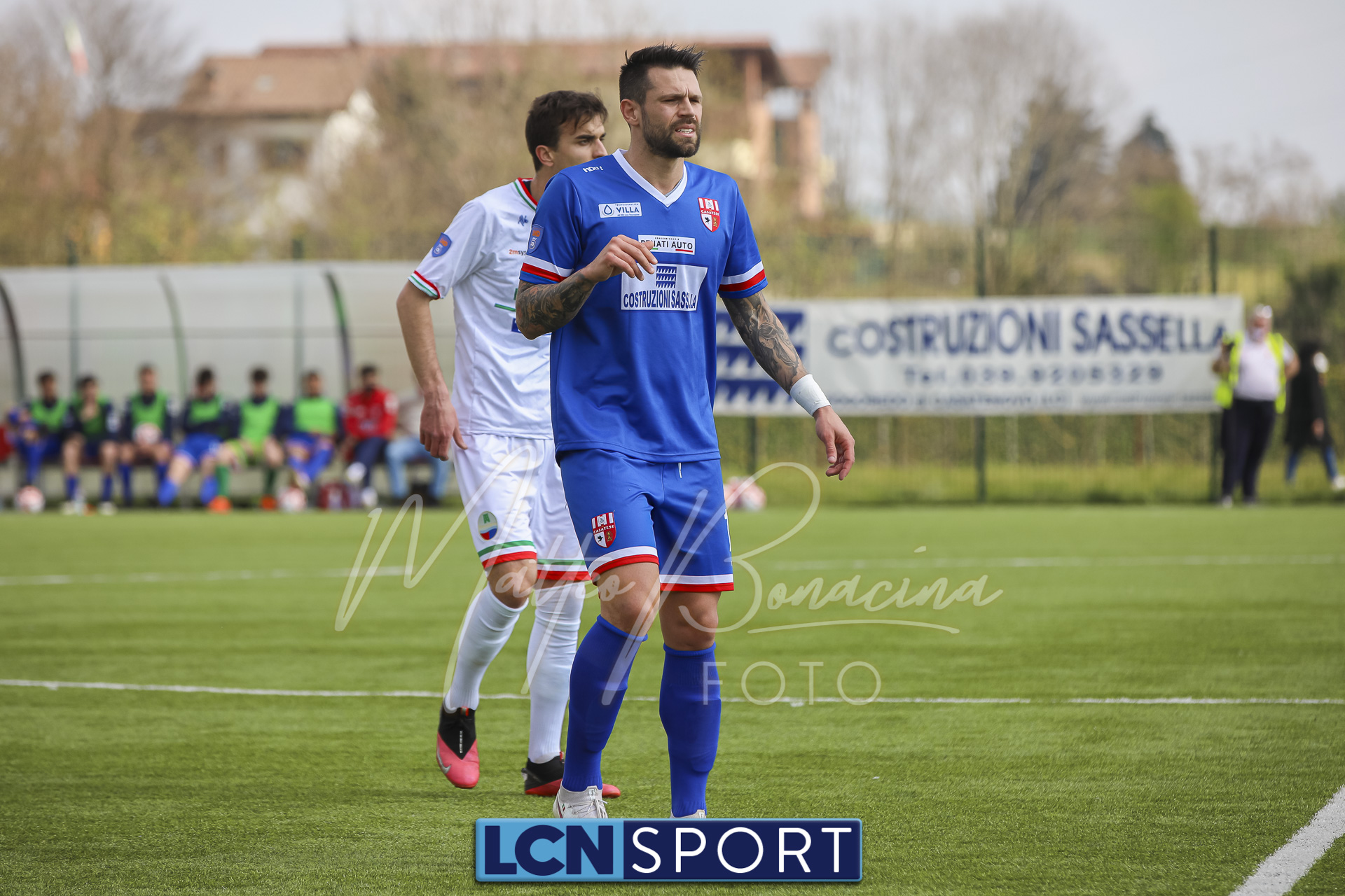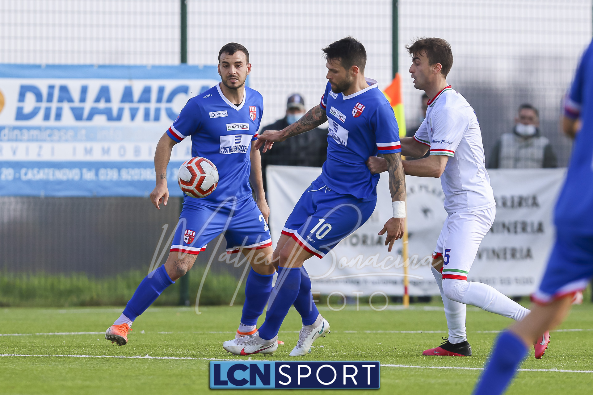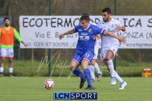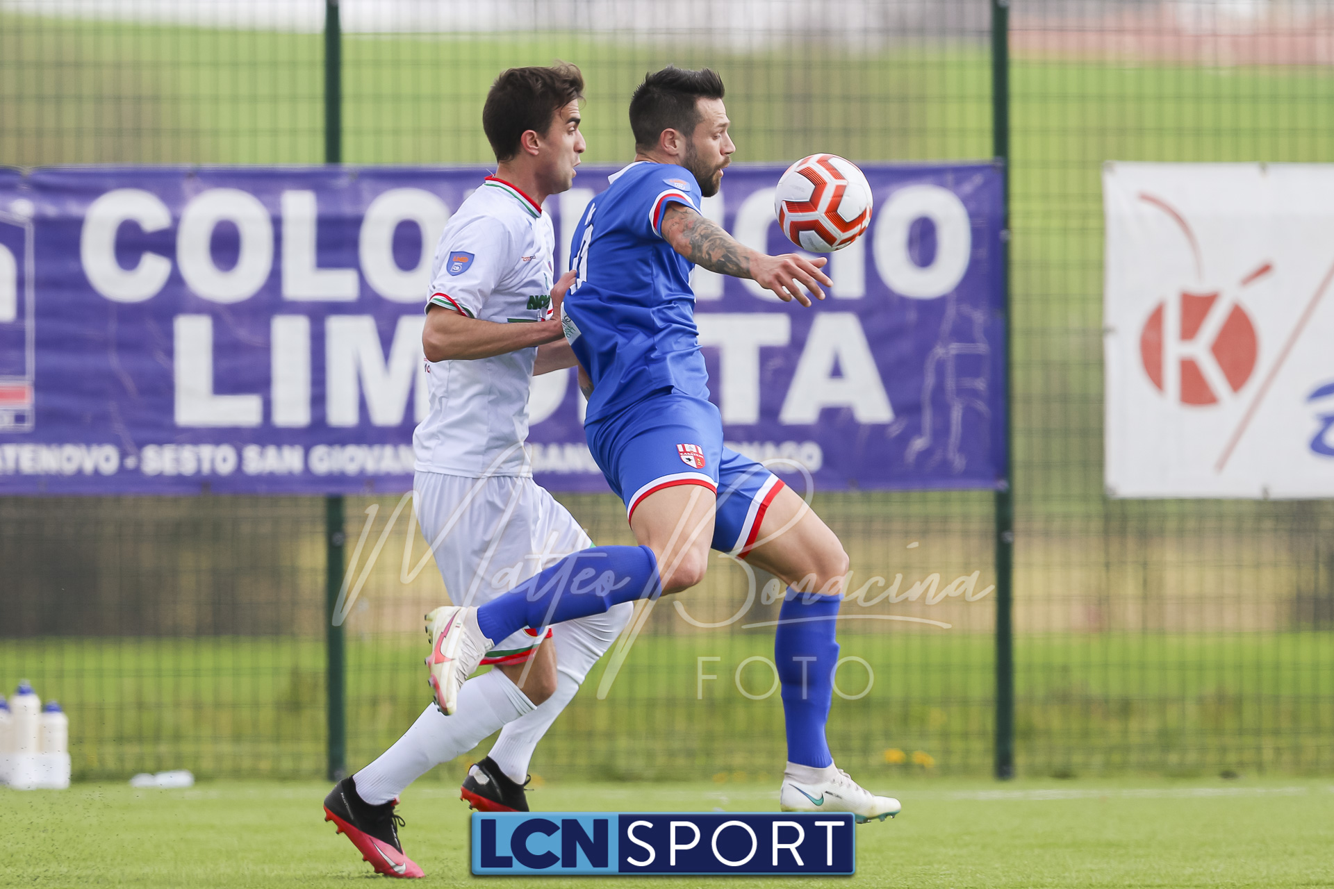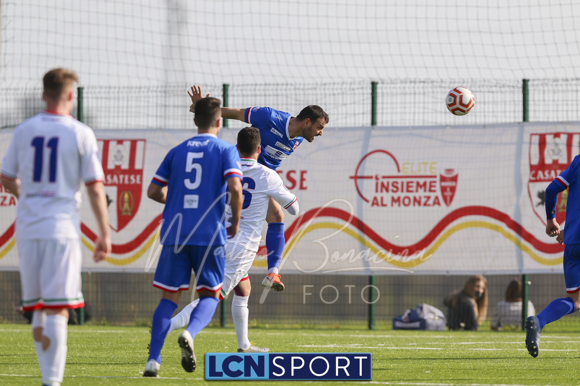 Dall’altra parte del campo la capolista fa molta fatica incidere, anche a causa delle concomitanti assenze di Guillermo Pèrez per squalifica e Roberto Candido per infortunio: sui tanti lanci lunghi di Perego, Bello e Baldan il centrale ospite Antonini Lui disputa una partita strepitosa in marcatura su Isella, che oltre il novantesimo reclama un rigore per un contatto in area proprio con il difensore italobrasiliano, al pari dei compagni di reparto mentre nè Sordillo, destro da fuori al 45′, nè Pontiggia, conclusione da ottima posizione al 95′, riescono a trovare i tre pali difesi da Guarino. A poco vale la gran quantità di attaccanti che mister Danilo Tricarico manda in campo nel corso della ripresa, perché gli spazi strettissimi in cui devono muoversi i quattro attaccanti biancorossi regalano un paio di palle interessanti al solo Gaeta, ma l’attaccante non trova lo spunto giusto per mettere a segno la prima rete in biancorosso.