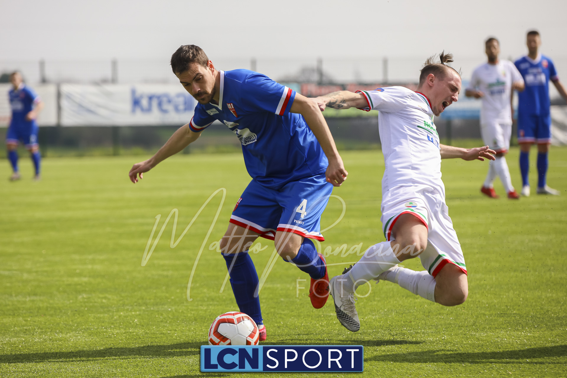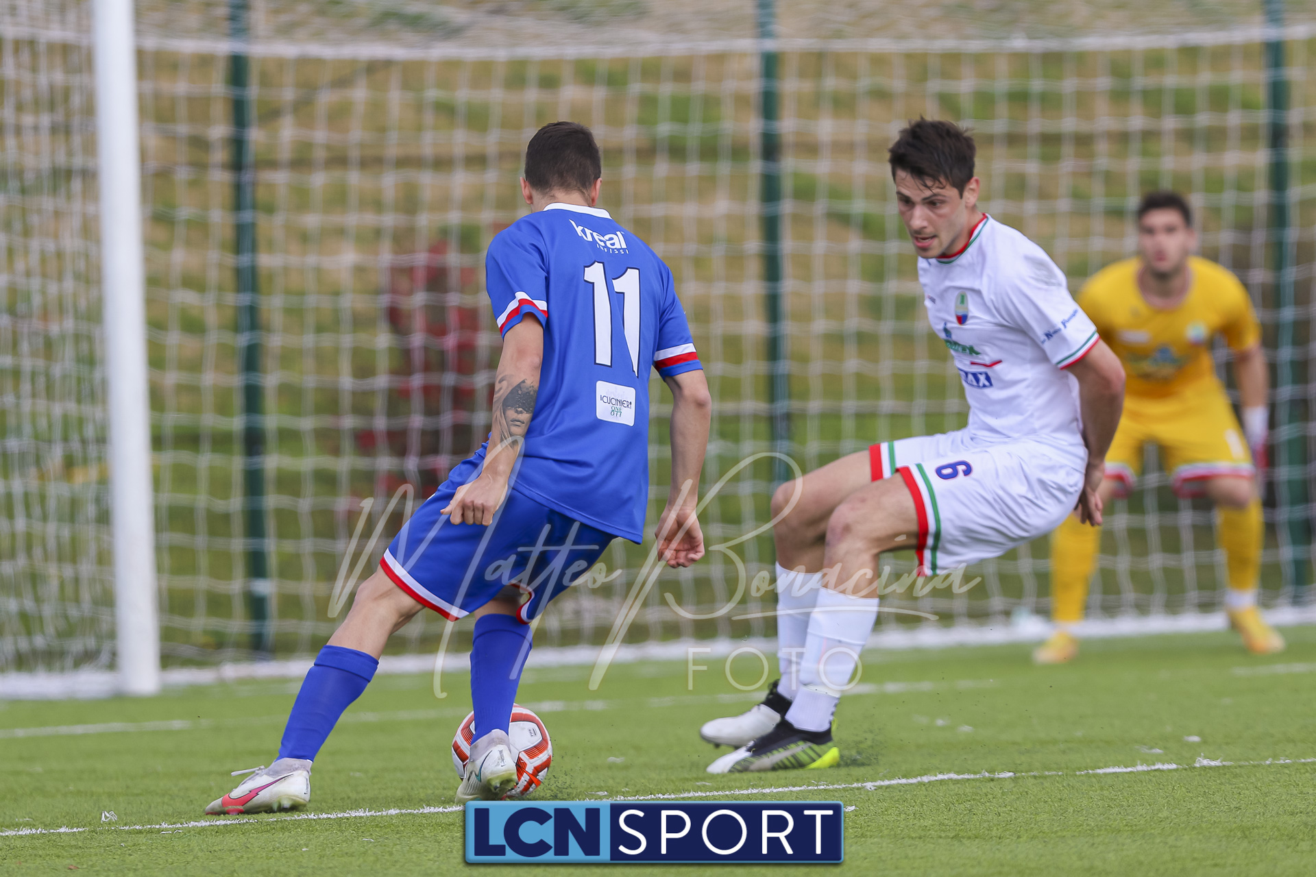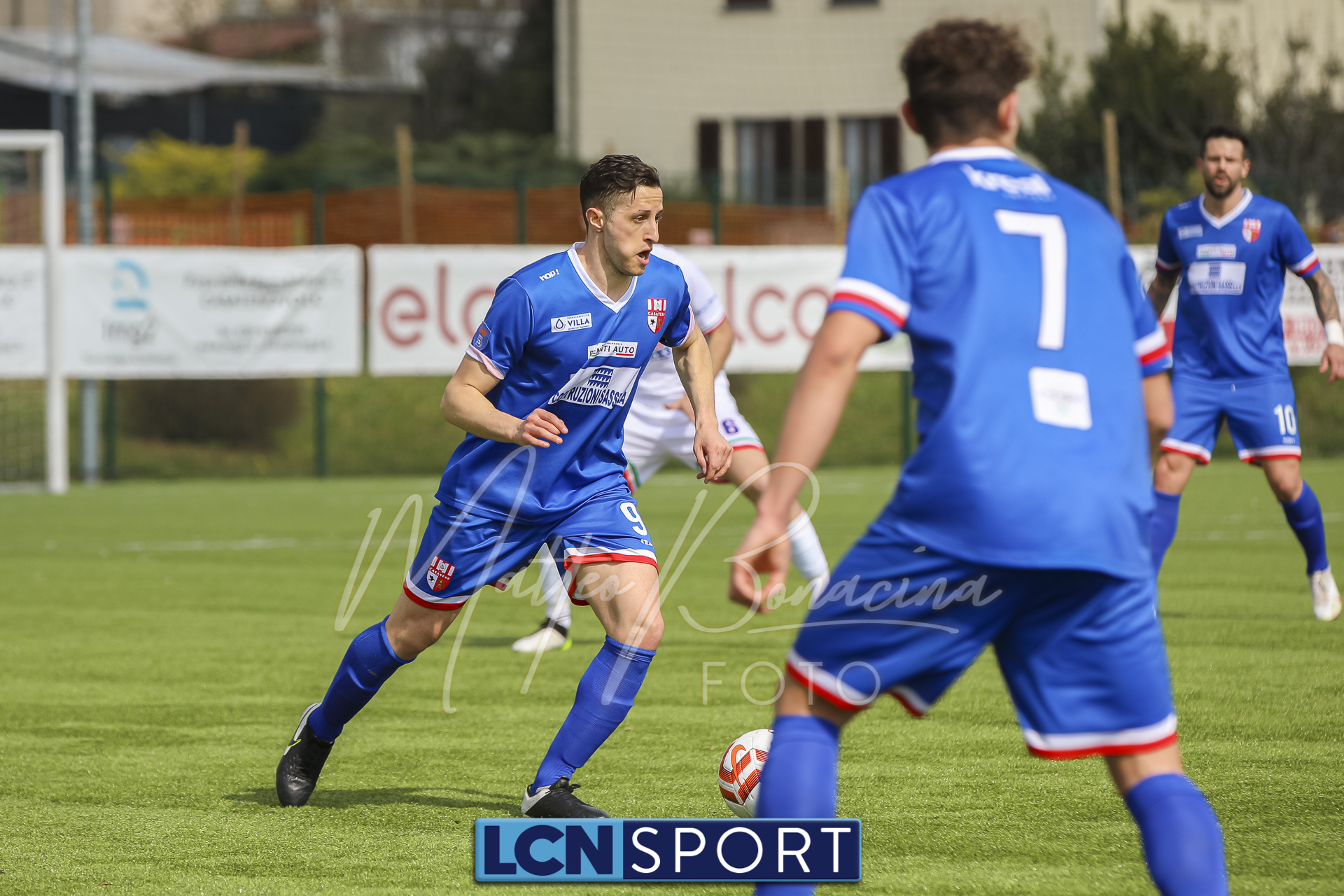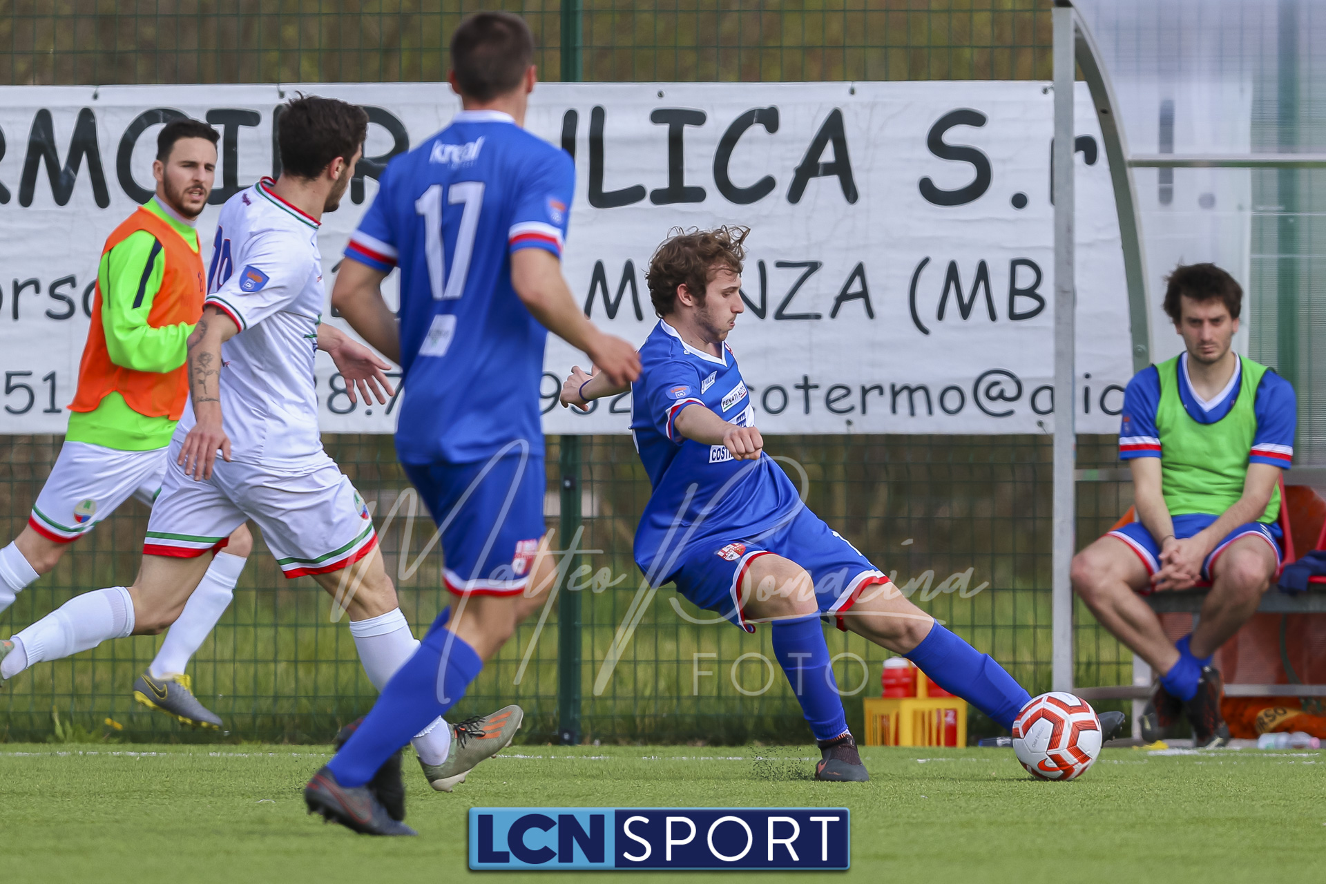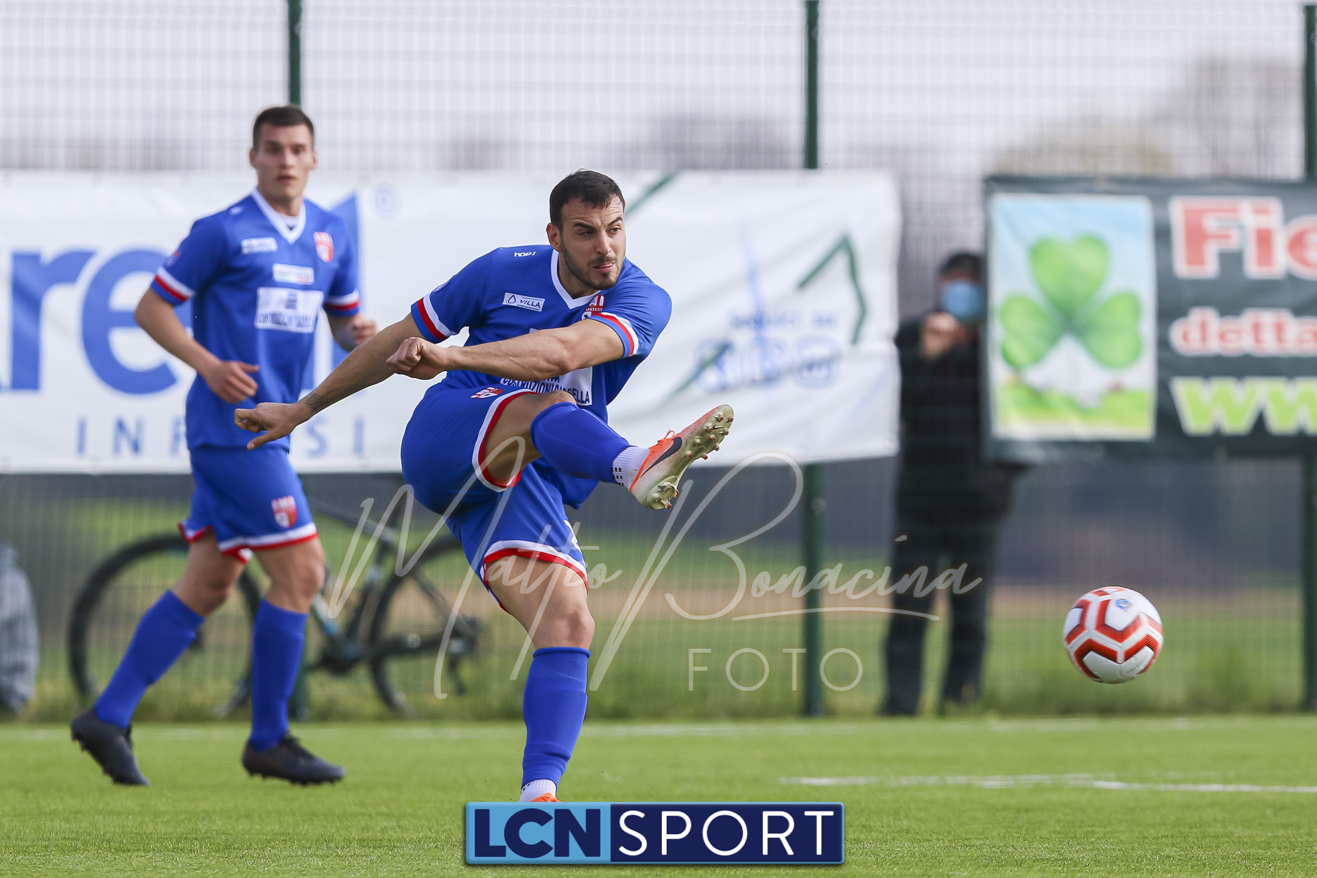 Dall’altra parte del campo la capolista fa molta fatica incidere, anche a causa delle concomitanti assenze di Guillermo Pèrez per squalifica e Roberto Candido per infortunio: sui tanti lanci lunghi di Perego, Bello e Baldan il centrale ospite Antonini Lui disputa una partita strepitosa in marcatura su Isella, che oltre il novantesimo reclama un rigore per un contatto in area proprio con il difensore italobrasiliano, al pari dei compagni di reparto mentre nè Sordillo, destro da fuori al 45′, nè Pontiggia, conclusione da ottima posizione al 95′, riescono a trovare i tre pali difesi da Guarino. A poco vale la gran quantità di attaccanti che mister Danilo Tricarico manda in campo nel corso della ripresa, perché gli spazi strettissimi in cui devono muoversi i quattro attaccanti biancorossi regalano un paio di palle interessanti al solo Gaeta, ma l’attaccante non trova lo spunto giusto per mettere a segno la prima rete in biancorosso.