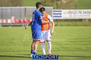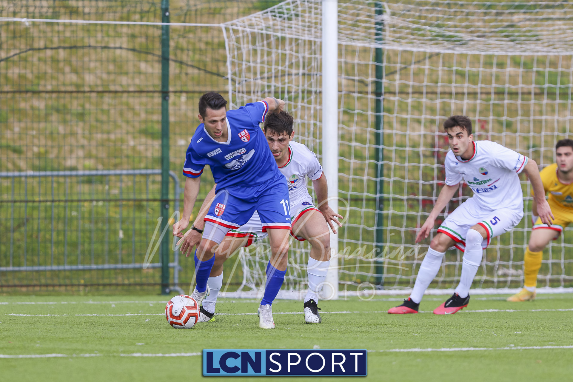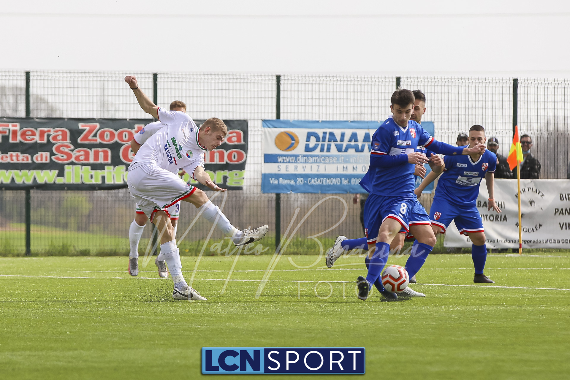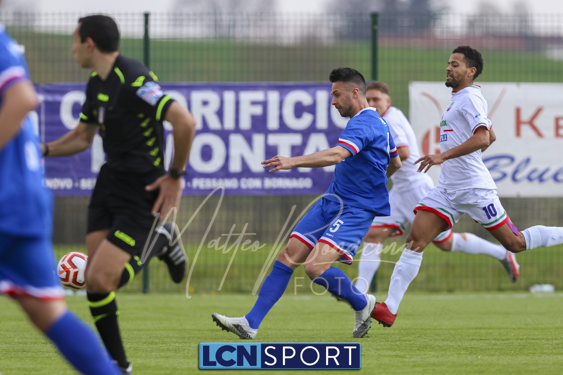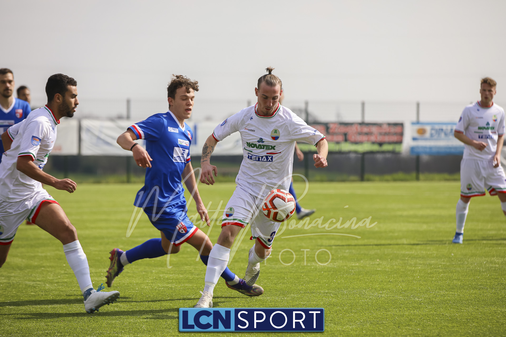 Dall’altra parte del campo la capolista fa molta fatica incidere, anche a causa delle concomitanti assenze di Guillermo Pèrez per squalifica e Roberto Candido per infortunio: sui tanti lanci lunghi di Perego, Bello e Baldan il centrale ospite Antonini Lui disputa una partita strepitosa in marcatura su Isella, che oltre il novantesimo reclama un rigore per un contatto in area proprio con il difensore italobrasiliano, al pari dei compagni di reparto mentre nè Sordillo, destro da fuori al 45′, nè Pontiggia, conclusione da ottima posizione al 95′, riescono a trovare i tre pali difesi da Guarino. A poco vale la gran quantità di attaccanti che mister Danilo Tricarico manda in campo nel corso della ripresa, perché gli spazi strettissimi in cui devono muoversi i quattro attaccanti biancorossi regalano un paio di palle interessanti al solo Gaeta, ma l’attaccante non trova lo spunto giusto per mettere a segno la prima rete in biancorosso.