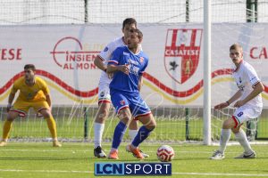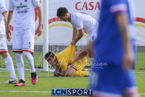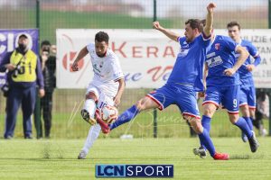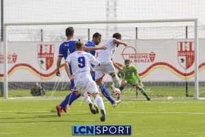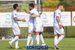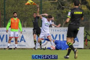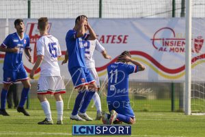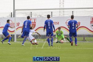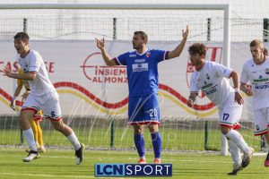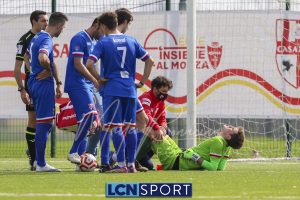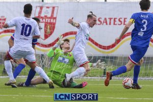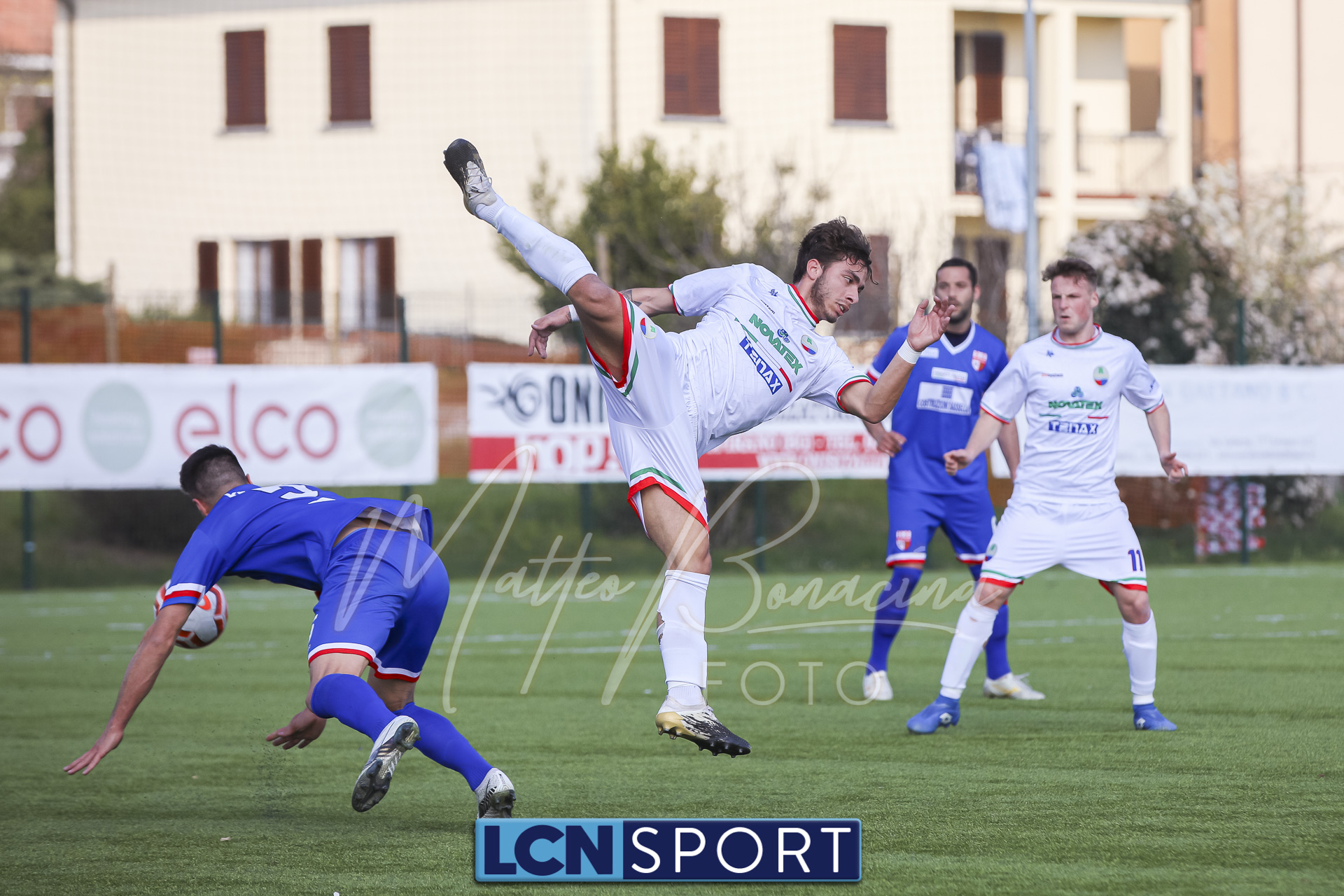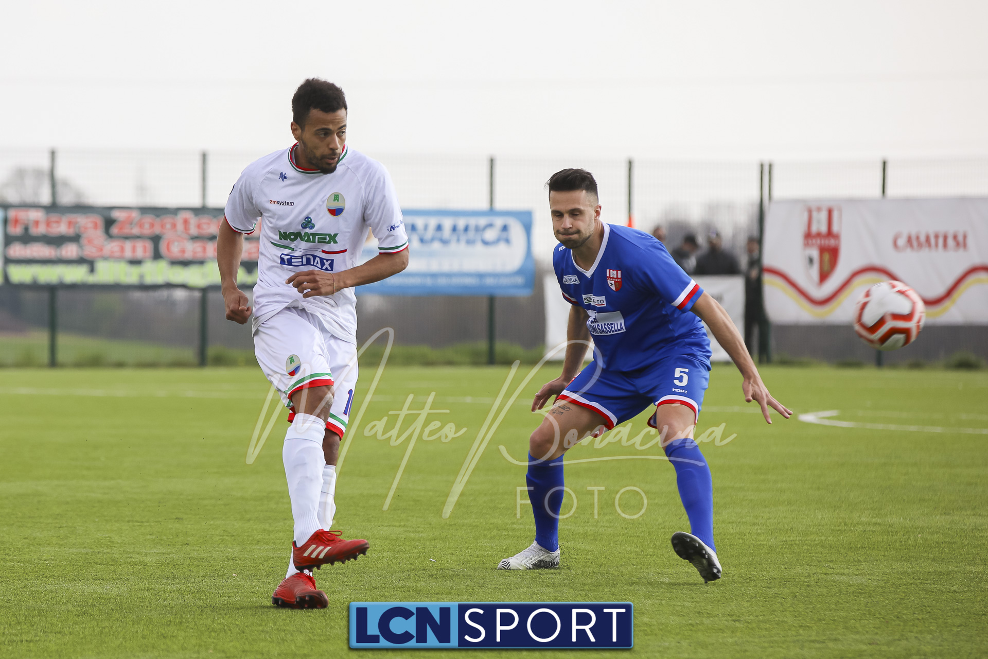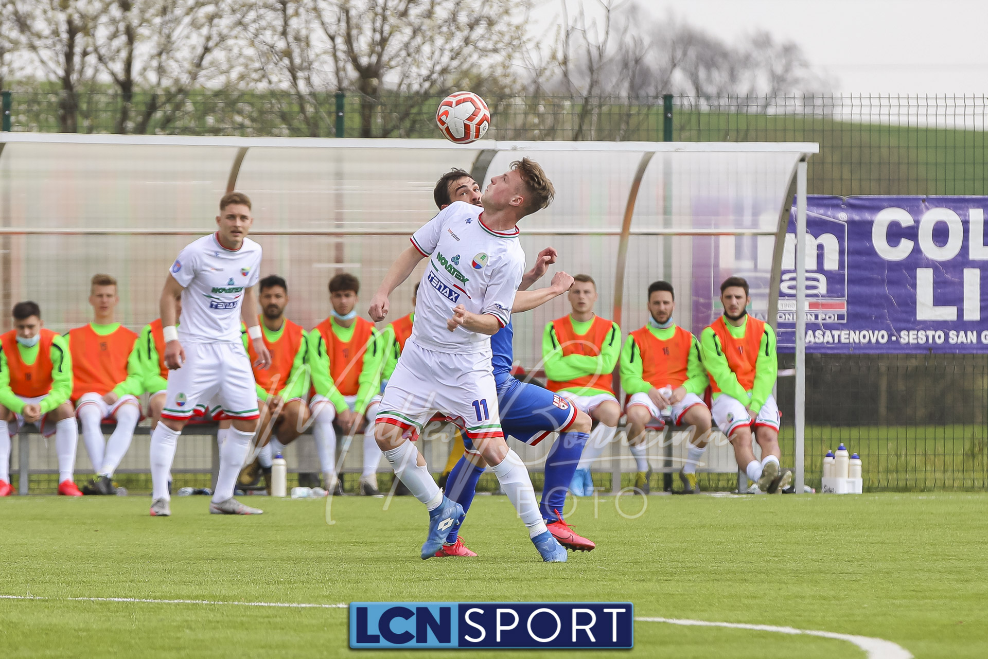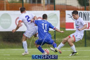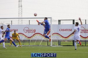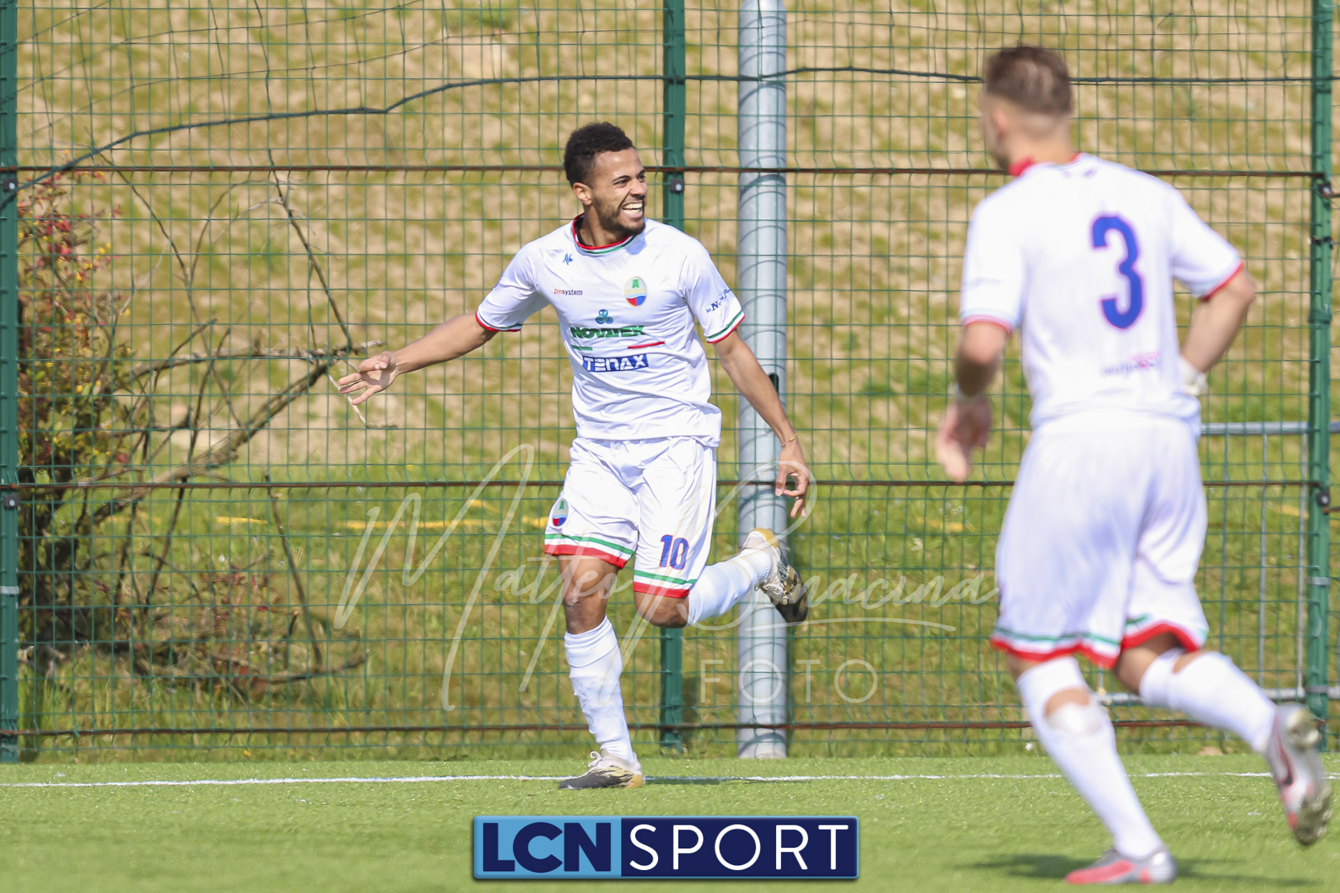 Dall’altra parte del campo la capolista fa molta fatica incidere, anche a causa delle concomitanti assenze di Guillermo Pèrez per squalifica e Roberto Candido per infortunio: sui tanti lanci lunghi di Perego, Bello e Baldan il centrale ospite Antonini Lui disputa una partita strepitosa in marcatura su Isella, che oltre il novantesimo reclama un rigore per un contatto in area proprio con il difensore italobrasiliano, al pari dei compagni di reparto mentre nè Sordillo, destro da fuori al 45′, nè Pontiggia, conclusione da ottima posizione al 95′, riescono a trovare i tre pali difesi da Guarino. A poco vale la gran quantità di attaccanti che mister Danilo Tricarico manda in campo nel corso della ripresa, perché gli spazi strettissimi in cui devono muoversi i quattro attaccanti biancorossi regalano un paio di palle interessanti al solo Gaeta, ma l’attaccante non trova lo spunto giusto per mettere a segno la prima rete in biancorosso.