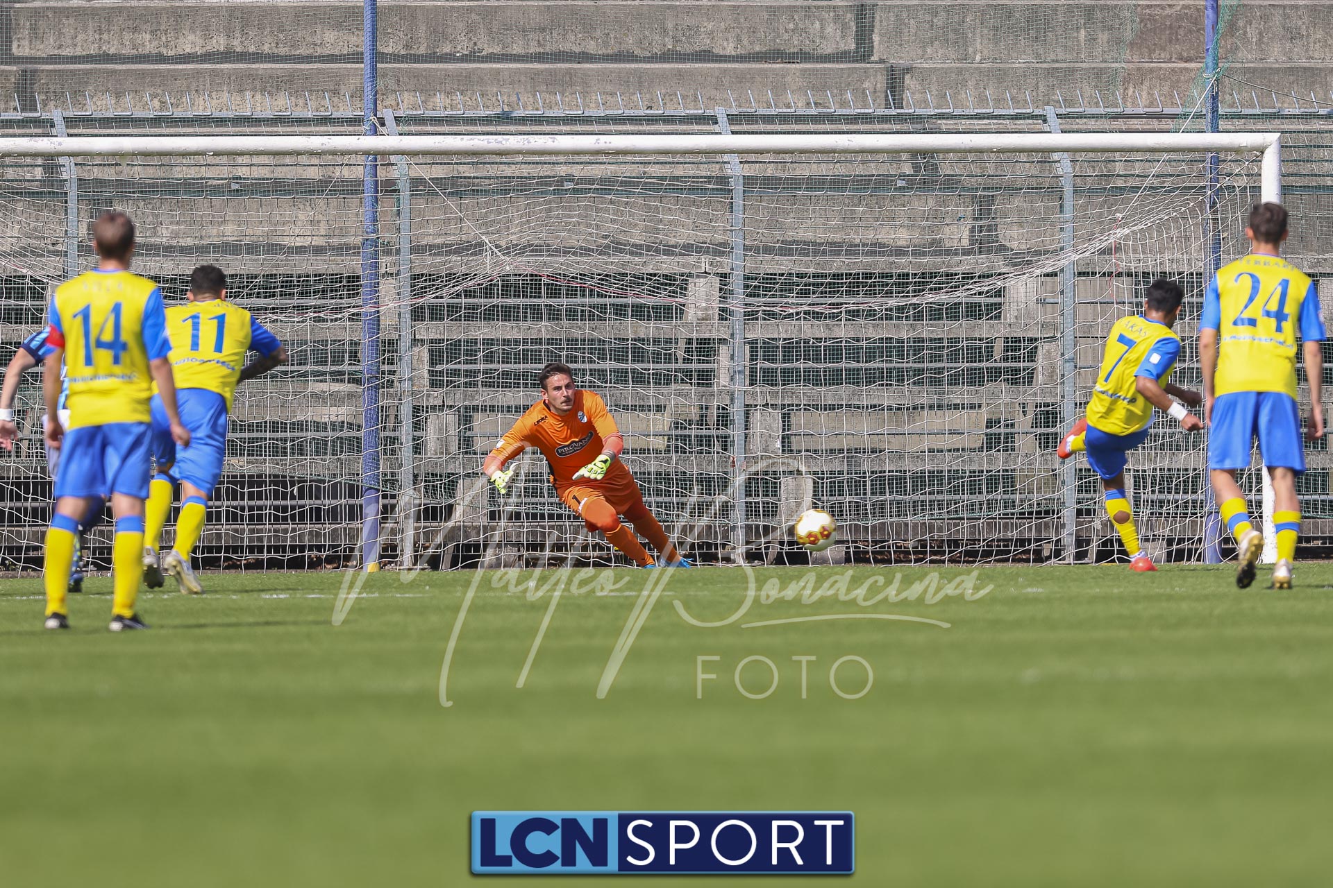 Al 53′ clamorosa occasione per Mastroianni che salta sul cross (deviato) di Azzi e di testa cadendo non riesce a inquadrare la porta. La grande occasione della Pergolettese al 62′ con la staffilata di Candela da fuori area e la grande parata di Pissardo. Al 65′ fallo di Marzorati in area e nuovo rigore per i padroni di casa: Duca va sul dischetto ma la manda alle stelle.