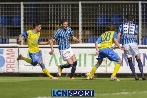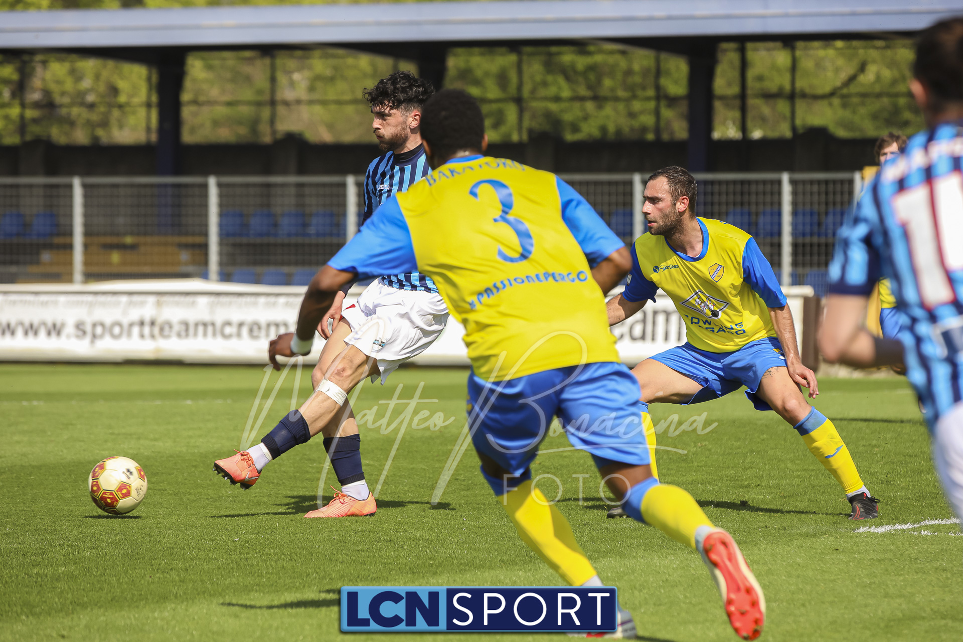 La reazione al 26′ con l’angolo di Iocolano, il quale calcia forte ma addosso a Ghidotti. Lo stesso Iocolano ci prova sugli sviluppi dell’azione arrembante del Lecco, ma trova il muro della difesa cremasca. Prima della mezz’ora Iocolano da sinistra si accentra, splendido destro a giro che fa la barba al palo. Al 35′ punizione da sinistra battuta da Duca, Panatti si gira in mezzo all’area, fuori di un paio di metri. Punizione ancora di Duca al 43′, vicinissimo all’incrocio dei pali.