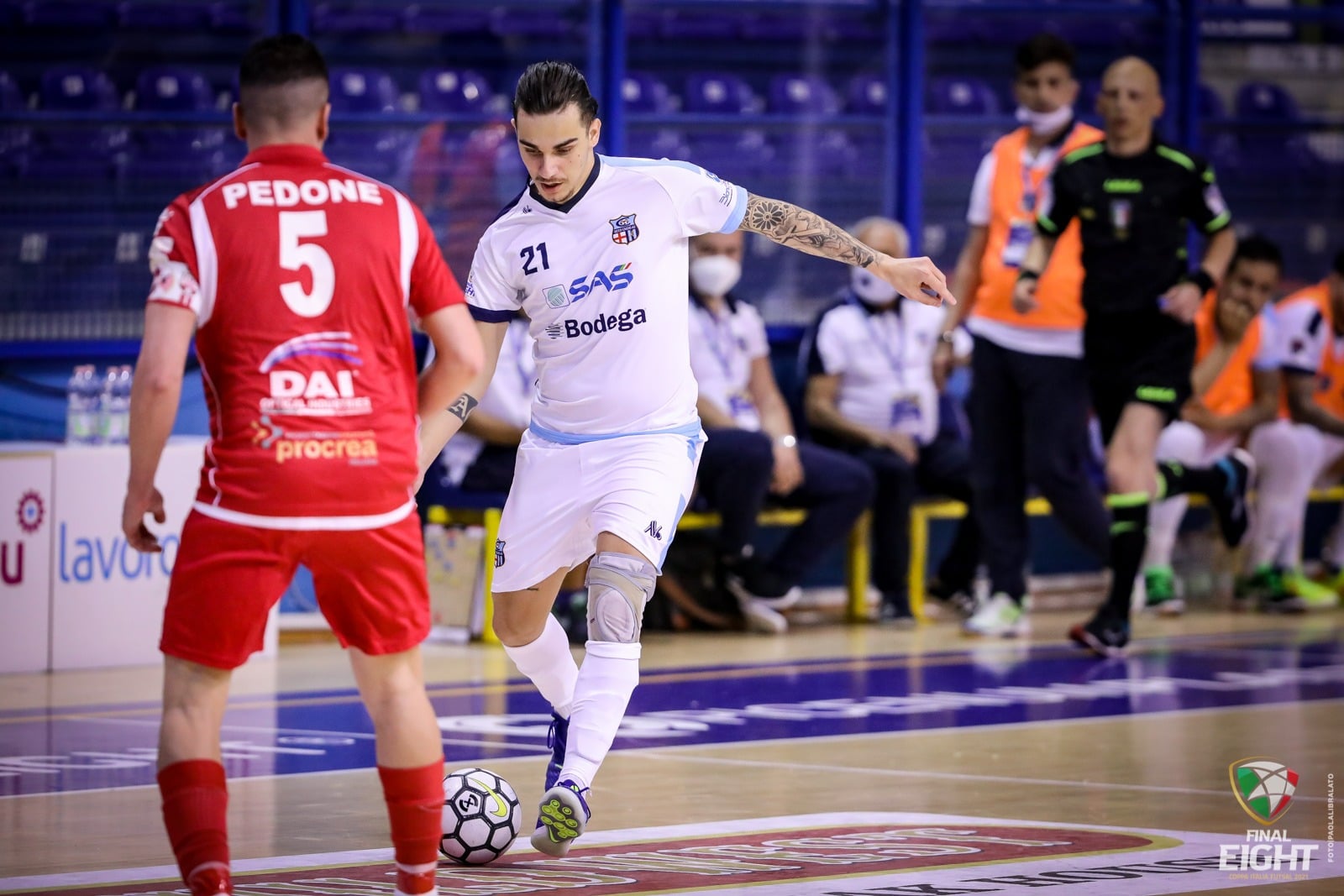 La ripresa si apre con il 4-2 di Rubio su assist di Ortiz. Palla al centro e Ozeas viene steso in area da Lopopolo. Rigore dello stesso pivot brasiliano e Lecco di nuovo a -1. I blucelesti spingono sfiorando il pareggio con Castillo, poi Ortiz centra la traversa dalla sua area con Di Tomaso fuori dai pali. Al 6′ Murolo va via sulla sinistra e in diagonale firma il 5-3. Il Lecco non demorde e al 9′ Mentasti mette dentro un pallone teso che Pedone infila nella propria porta per il 5-4. Joao e Hartingh mancano il pareggio al 9′, mentre al 10′ è ancora Joao a sparare fuori da ottima posizione su sponda di Castillo. Al 12′ invenzione di Gallinica per Hartingh e miracolo di Lopopolo a distanza ravvicinata. Il Lecco chiude gli avversari nella loro metà campo e Ortiz si becca il secondo giallo per un fallo su Ozeas. Il Lecco sfrutta subito la superiorità trovando il 5-5 con una botta di Gallinica da fuori area. La gara è apertissima. Dell’Olio manca il nuovo vantaggio biancorosso a due passi dalla porta, ma al 15′ una gran giocata di Murolo, conclusa con un pallonetto sull’uscita di Di Tomaso, riporta sopra le Aquile sul 6-5. A 3’36” dal termine Iacobuzio diventa portiere di movimento e a 2’16” è Gallinica, dalla stessa posizione di prima, a insaccare il 6-6. L’ultima occasione è per il Lecco, con Joao che di esterno davanti a Lopopolo non inquadra la porta.